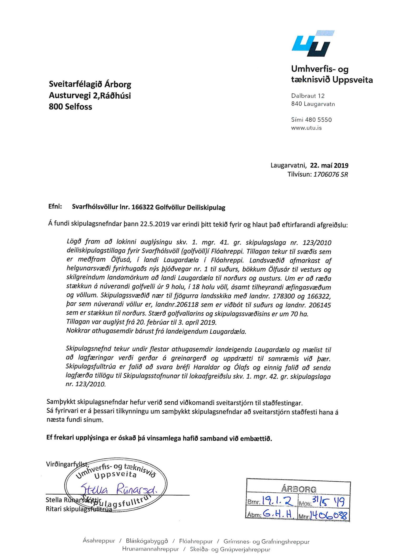 Afgreiðsla skipulagsnefndar Flóahrepps, vegna Svarfhólsvallar, deiliskipulag golfvallar.pdf