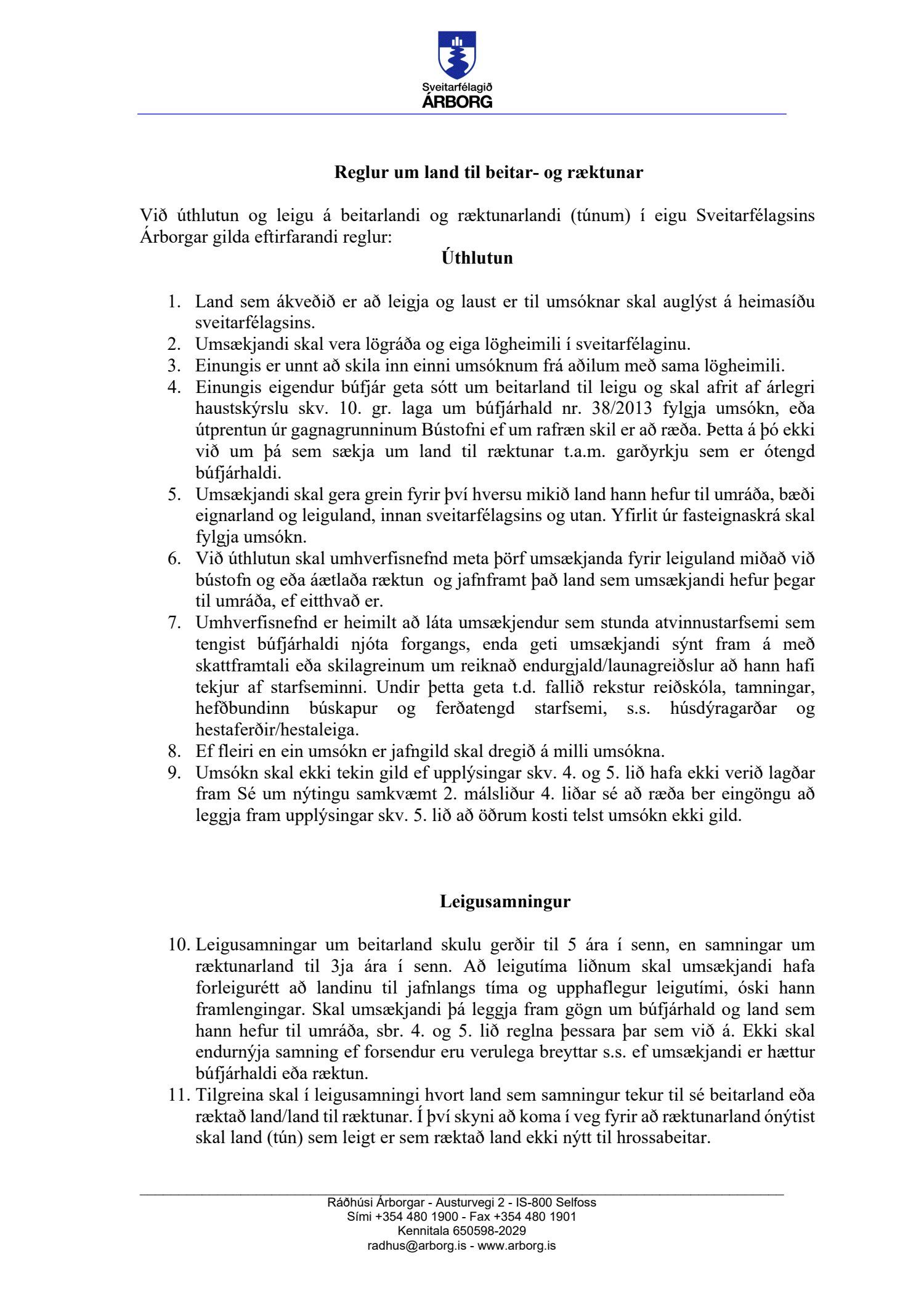 Breytingar á reglum um land til beitar- og ræktunar lagðar fram.