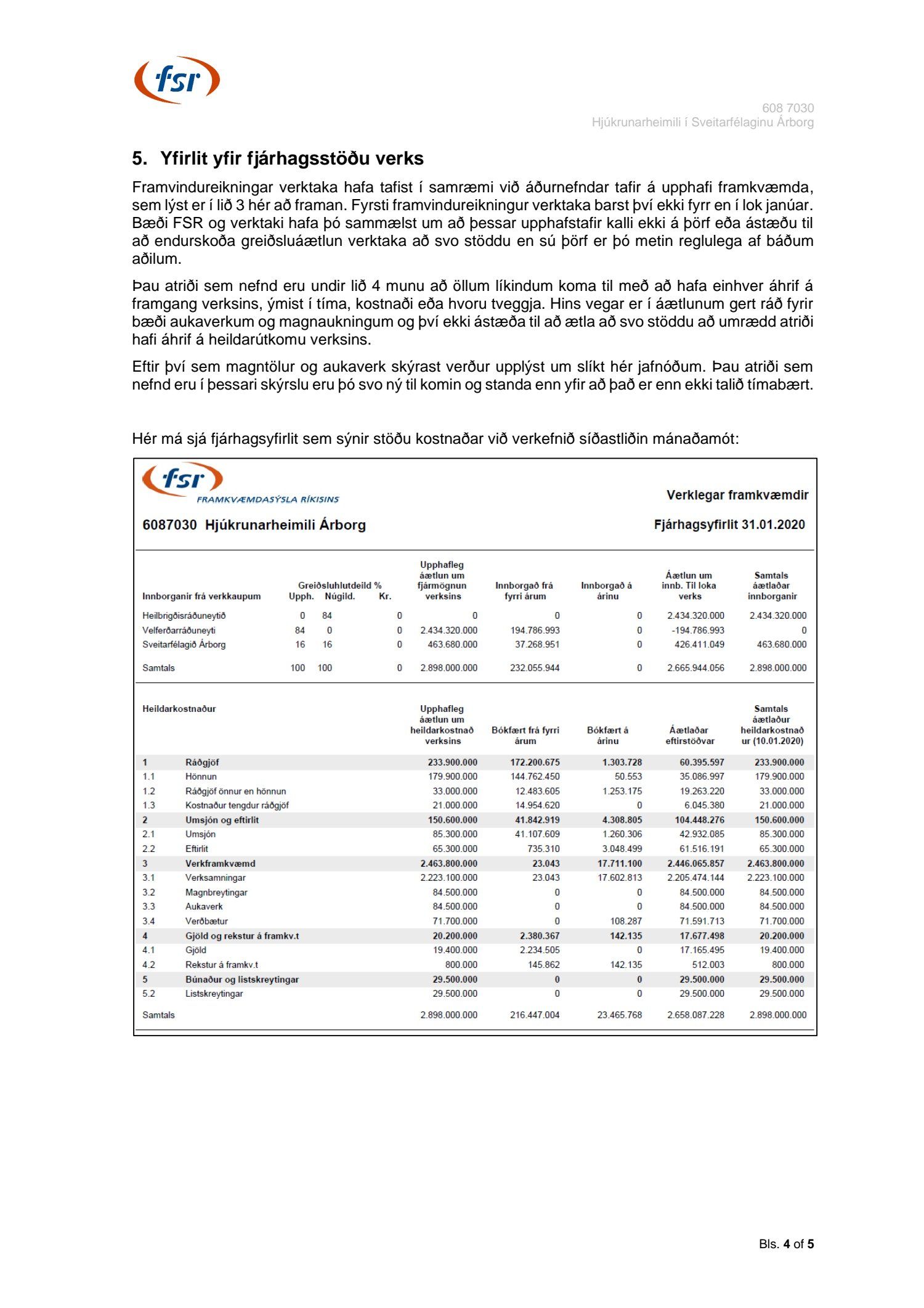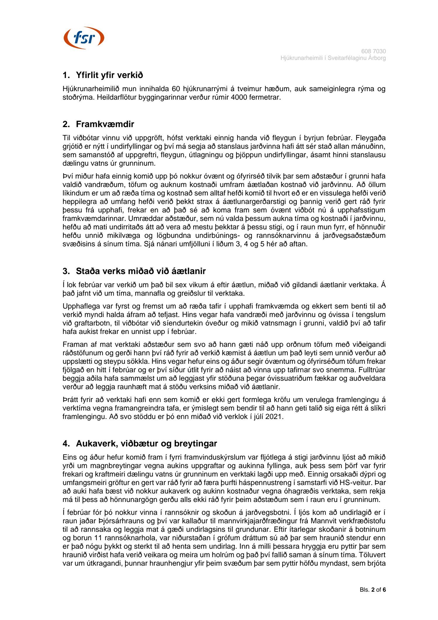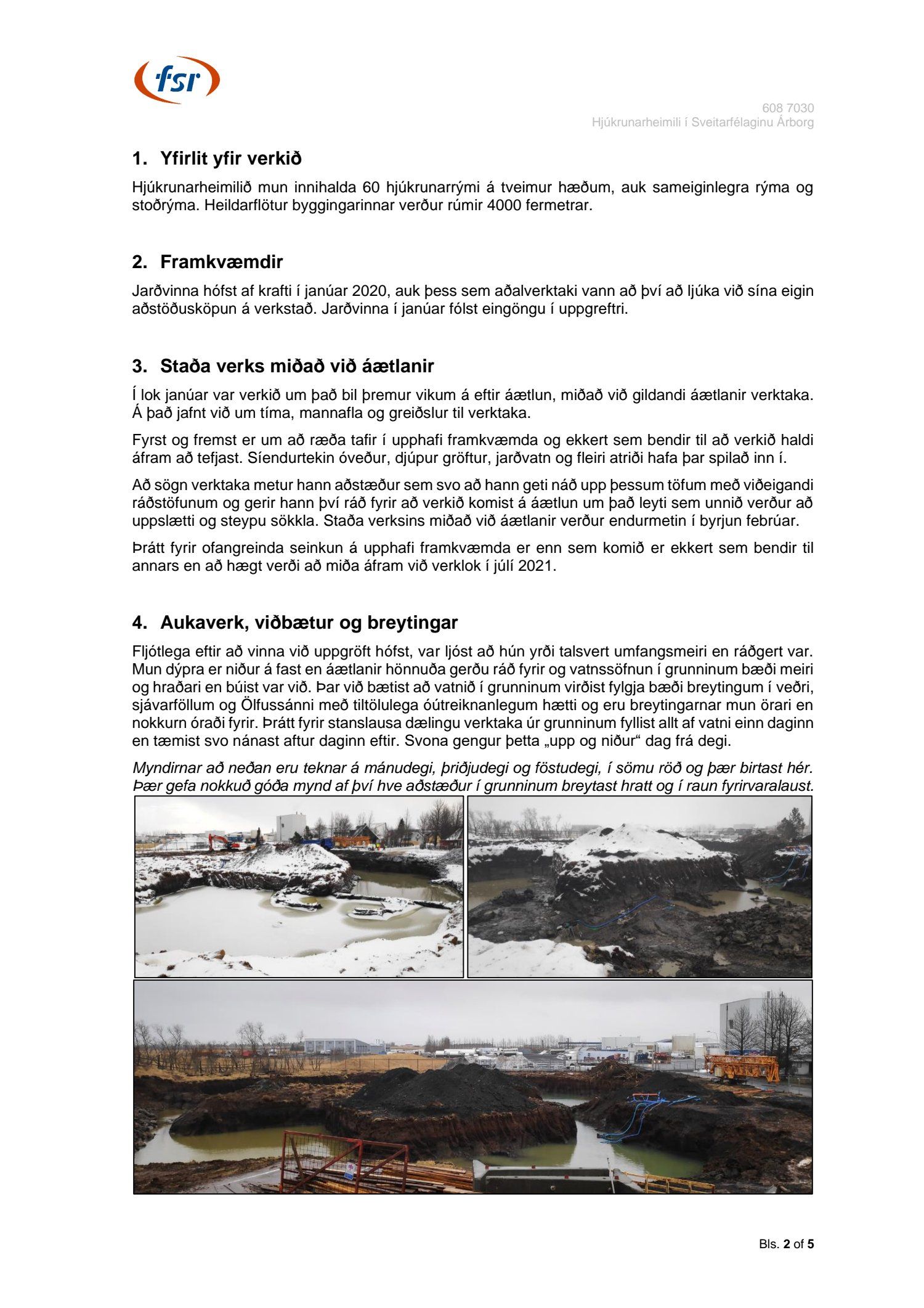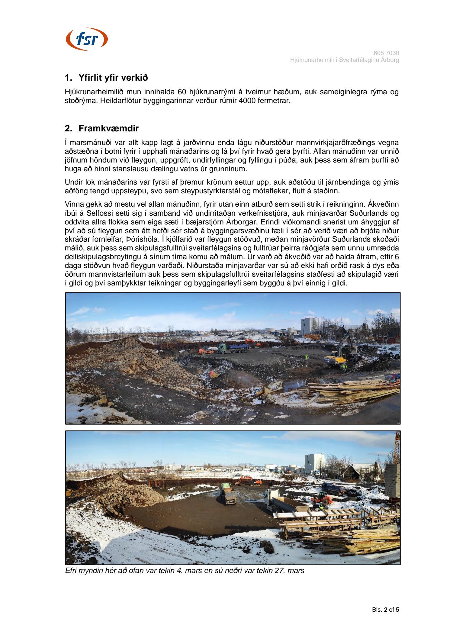Framvinduskýrslur um byggingu hjúkrunarheimilis í Árborg. Desember, janúar, ferbrúar og mars.