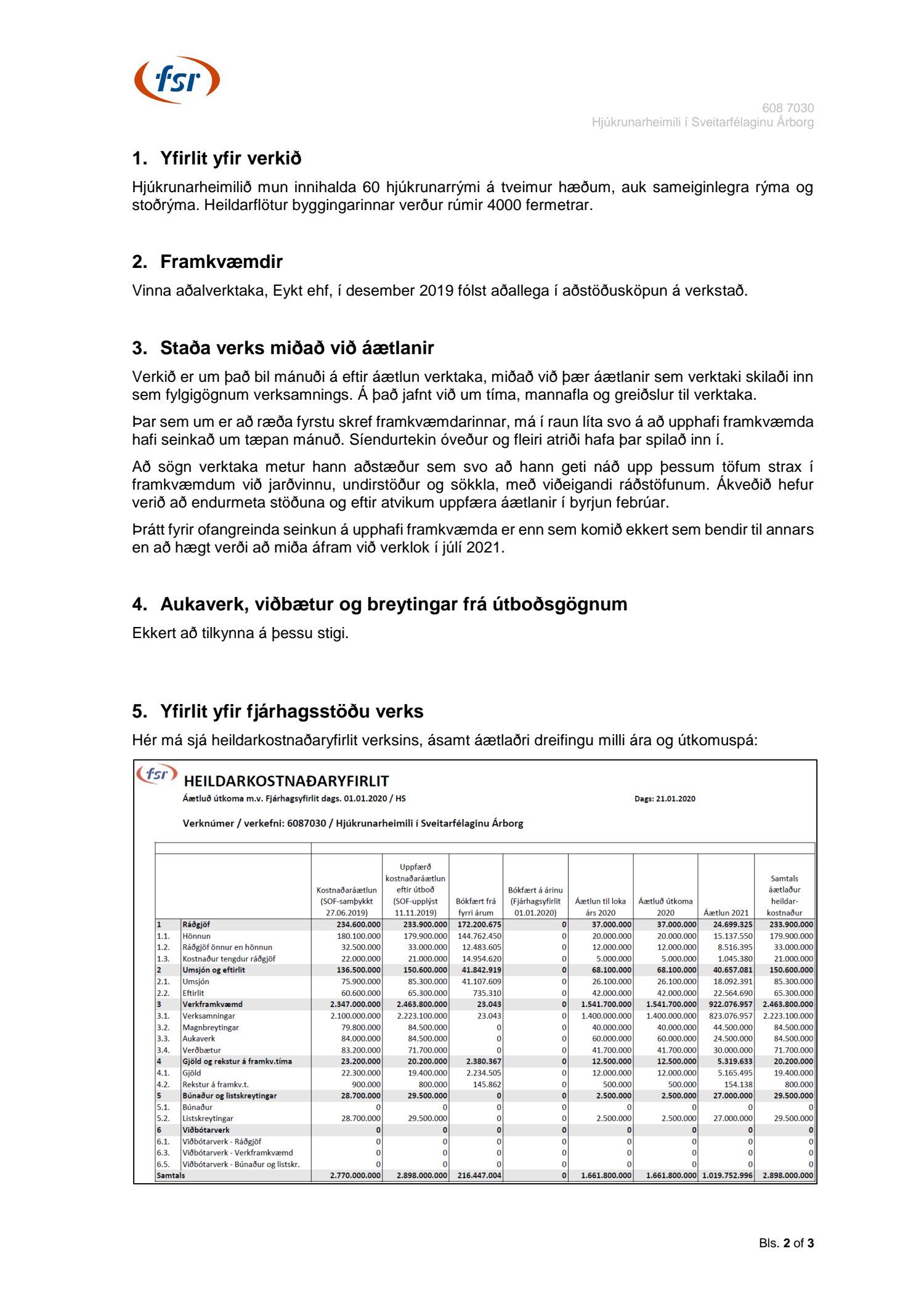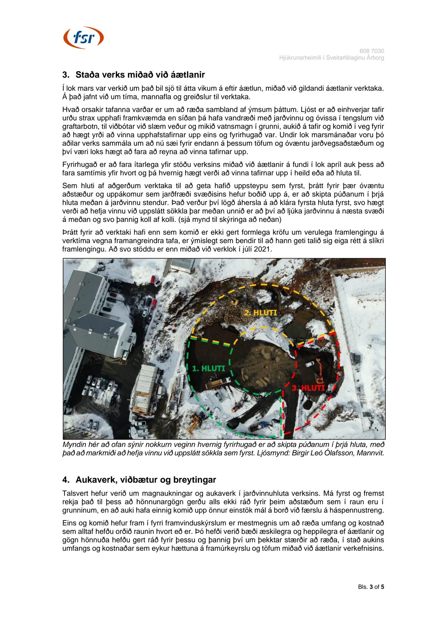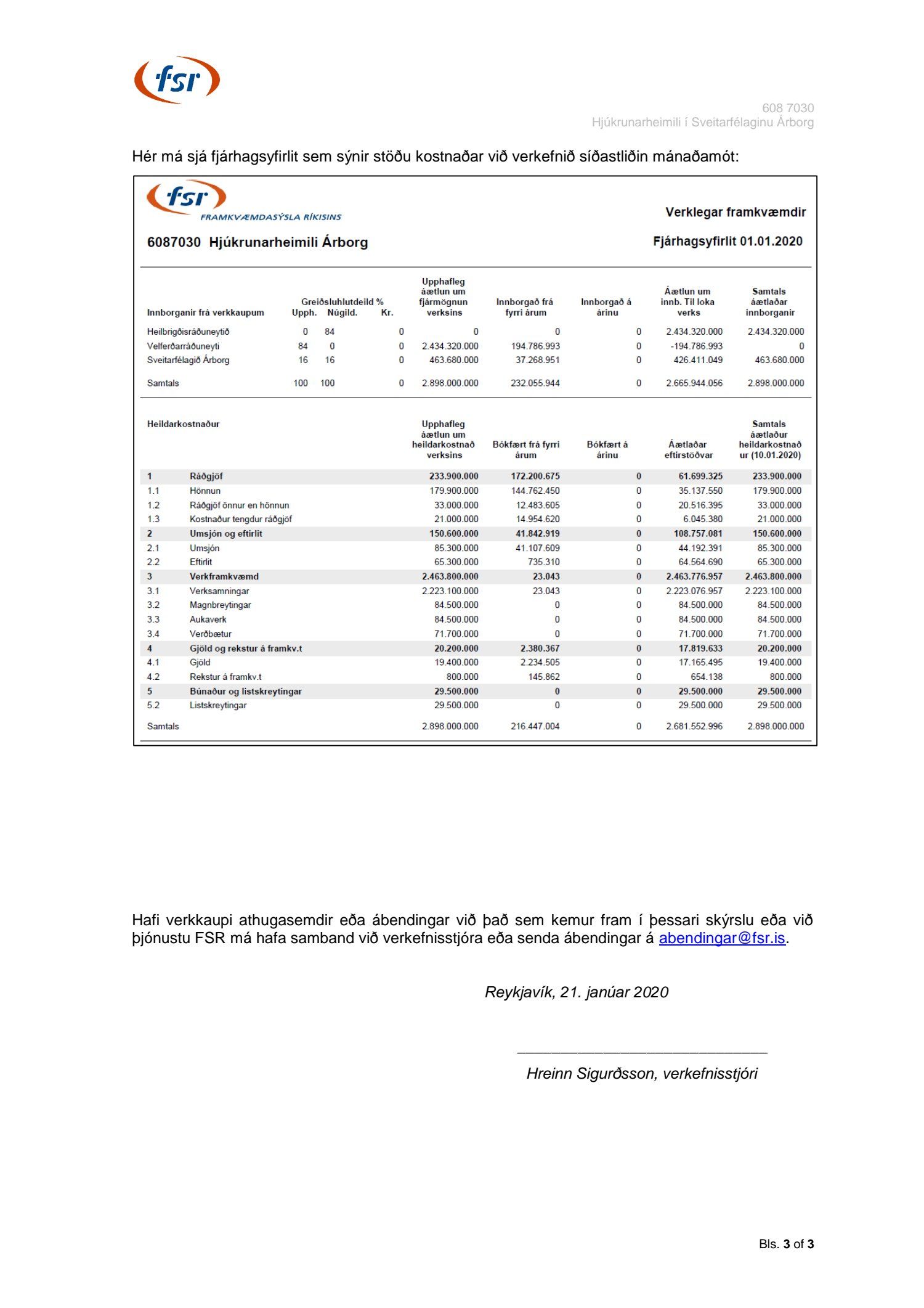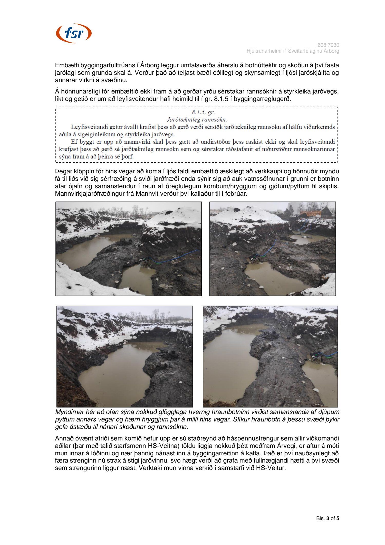 Framvinduskýrslur um byggingu hjúkrunarheimilis í Árborg. Desember, janúar, ferbrúar og mars.