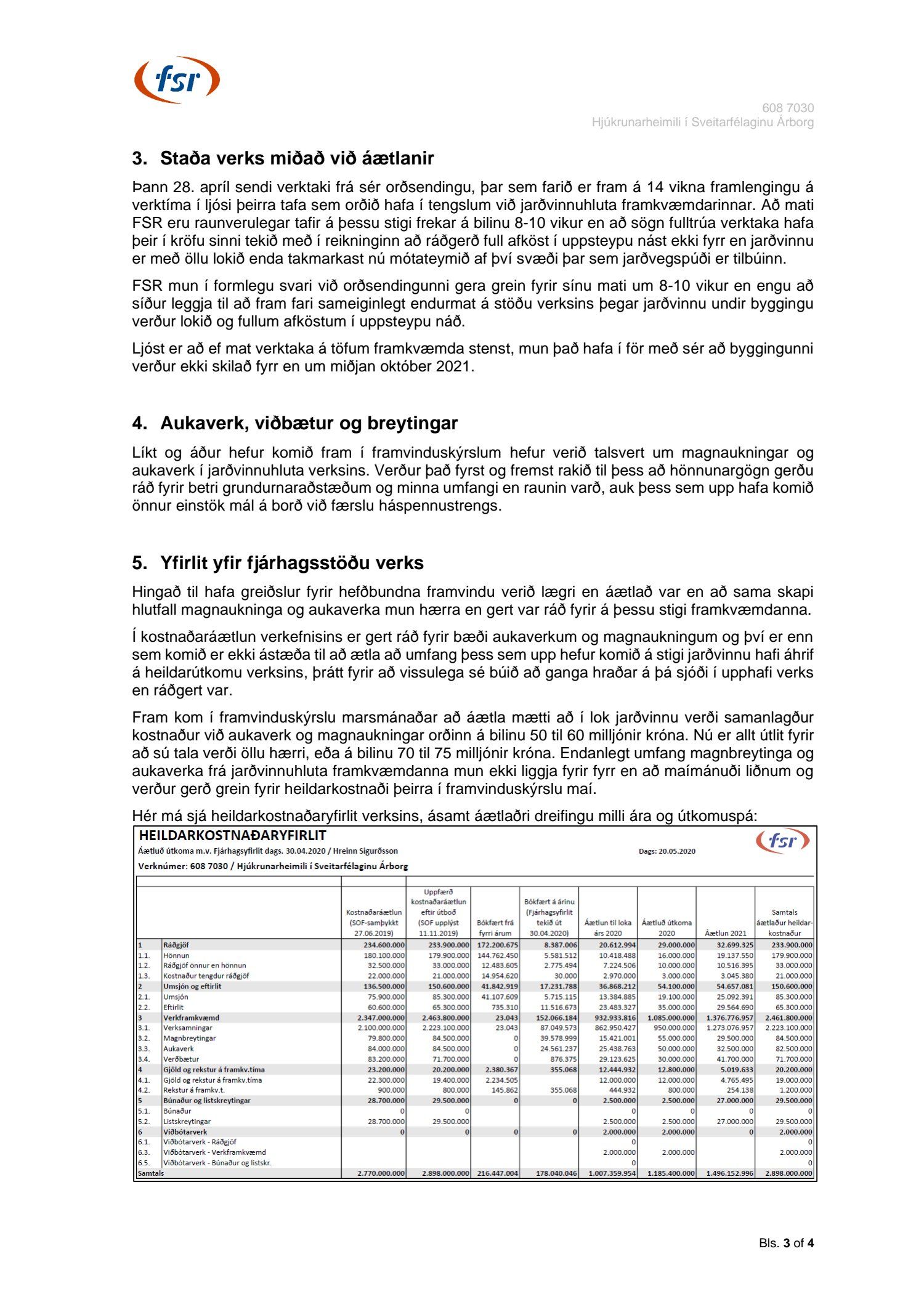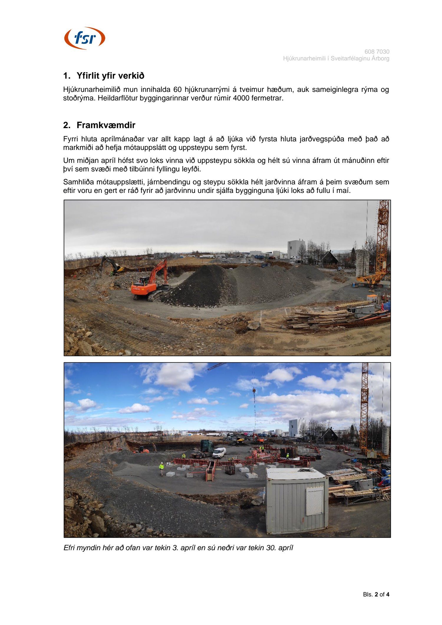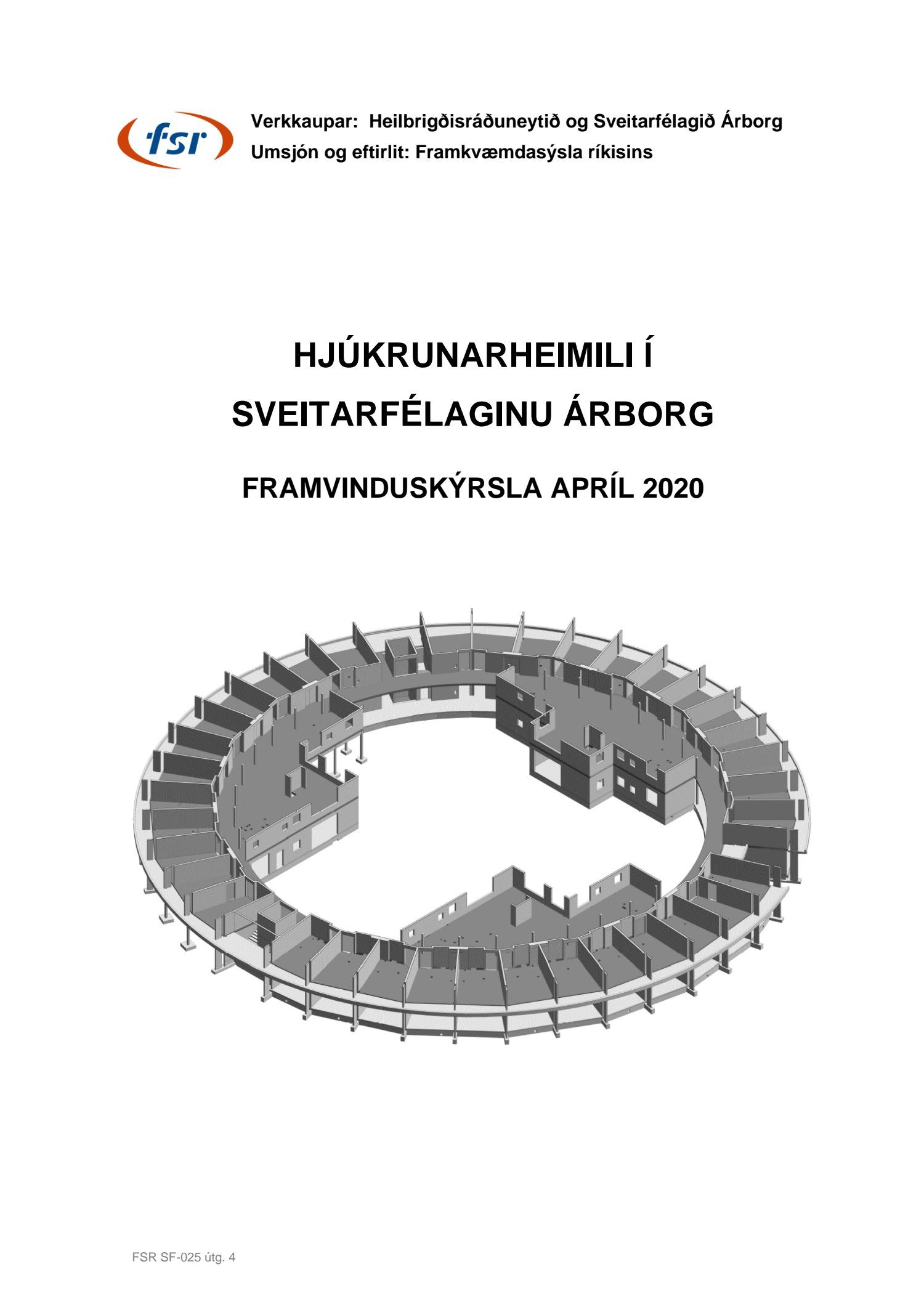 Framvinduskýrsla um byggingu hjúkrunarheimilis í Árborg. Apríl.