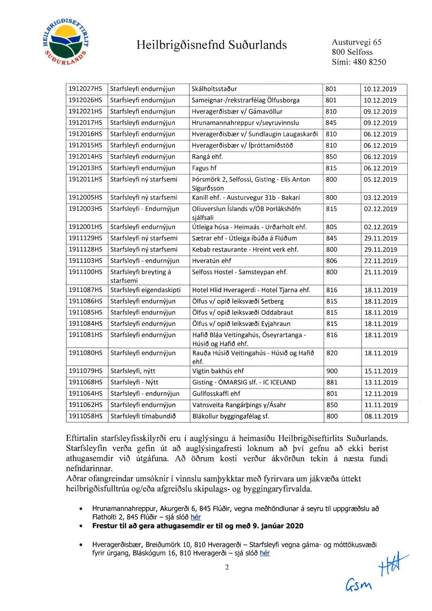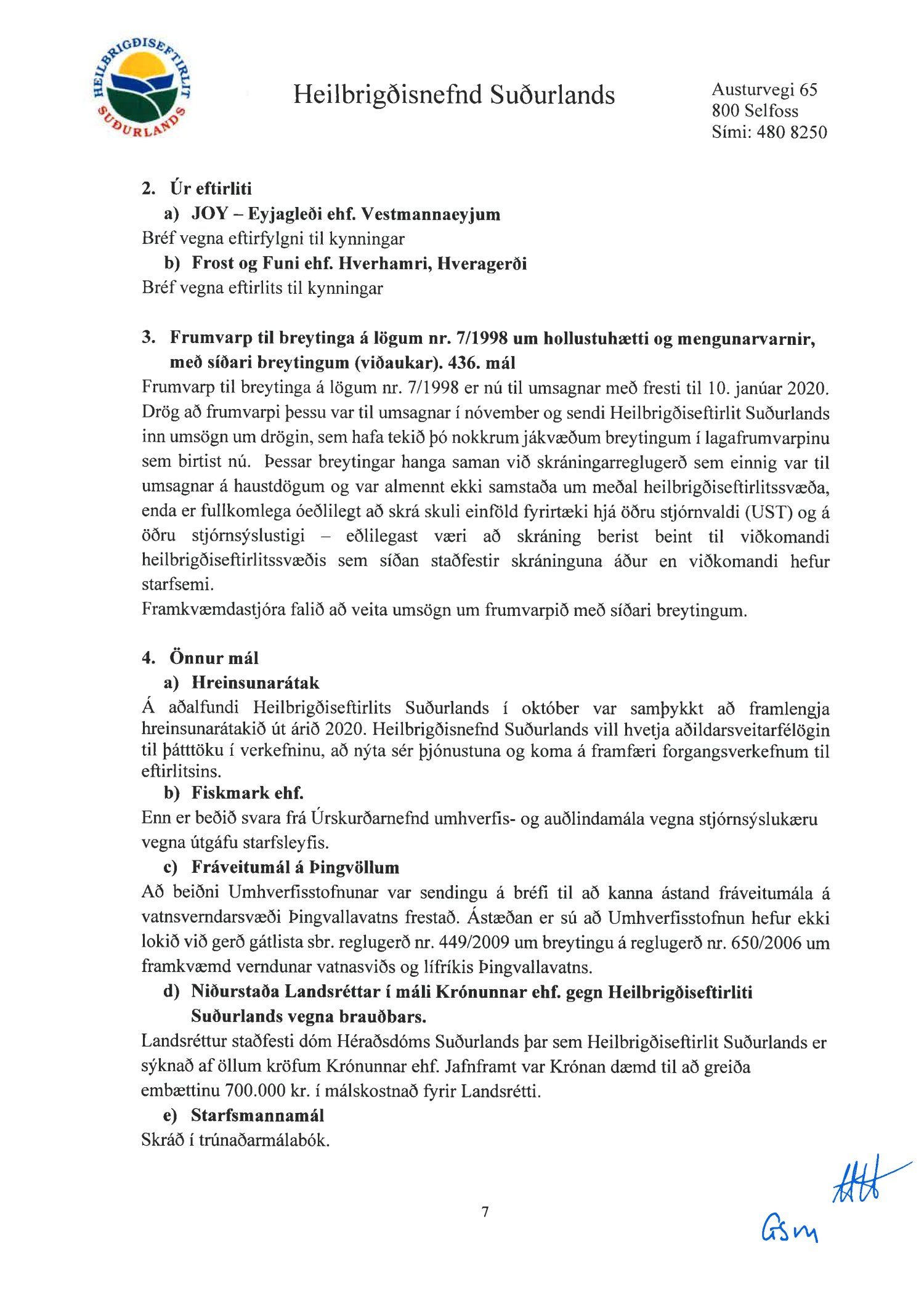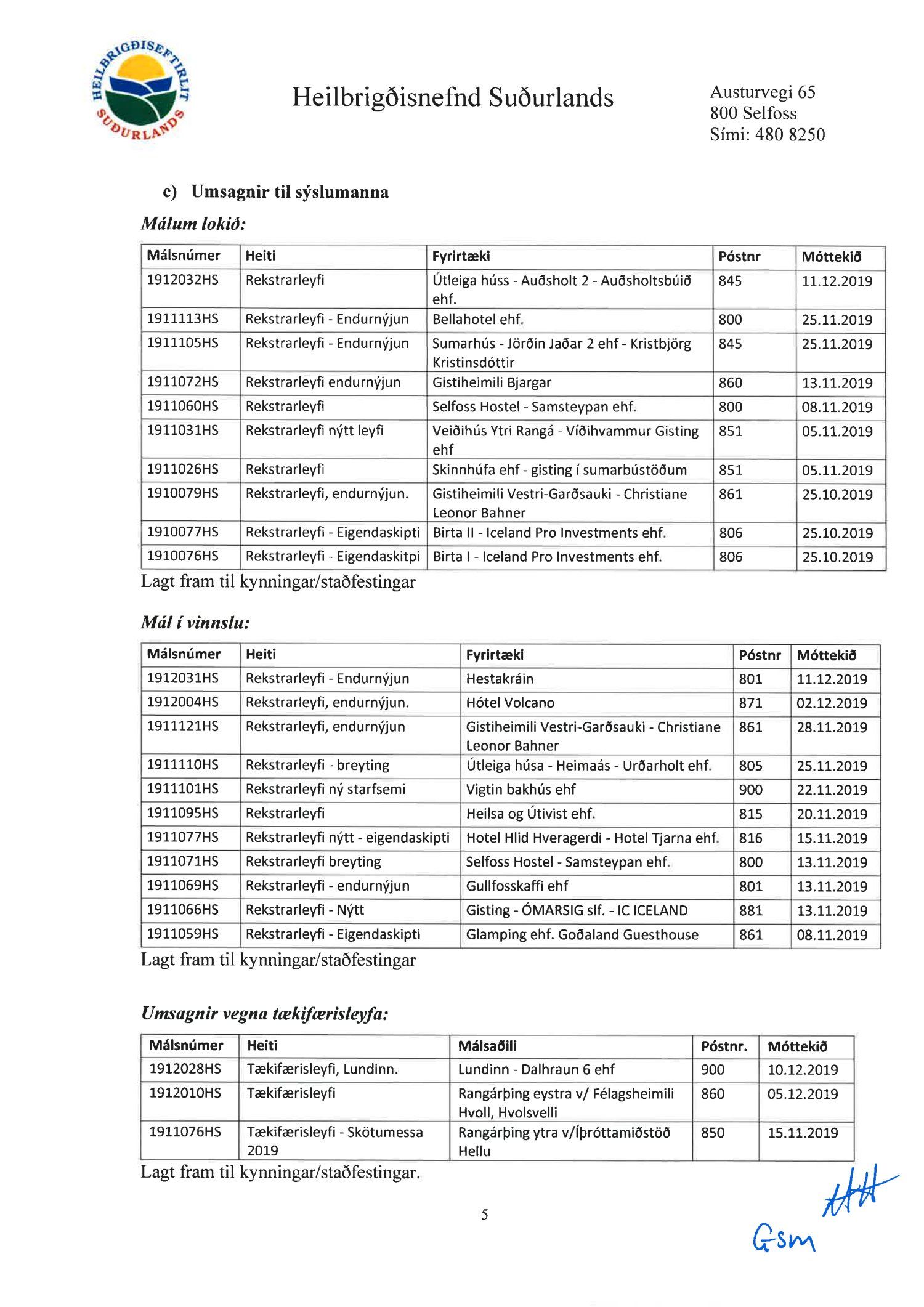 Fundargerðir heilbrigðisnefndar Suðurlands 2019