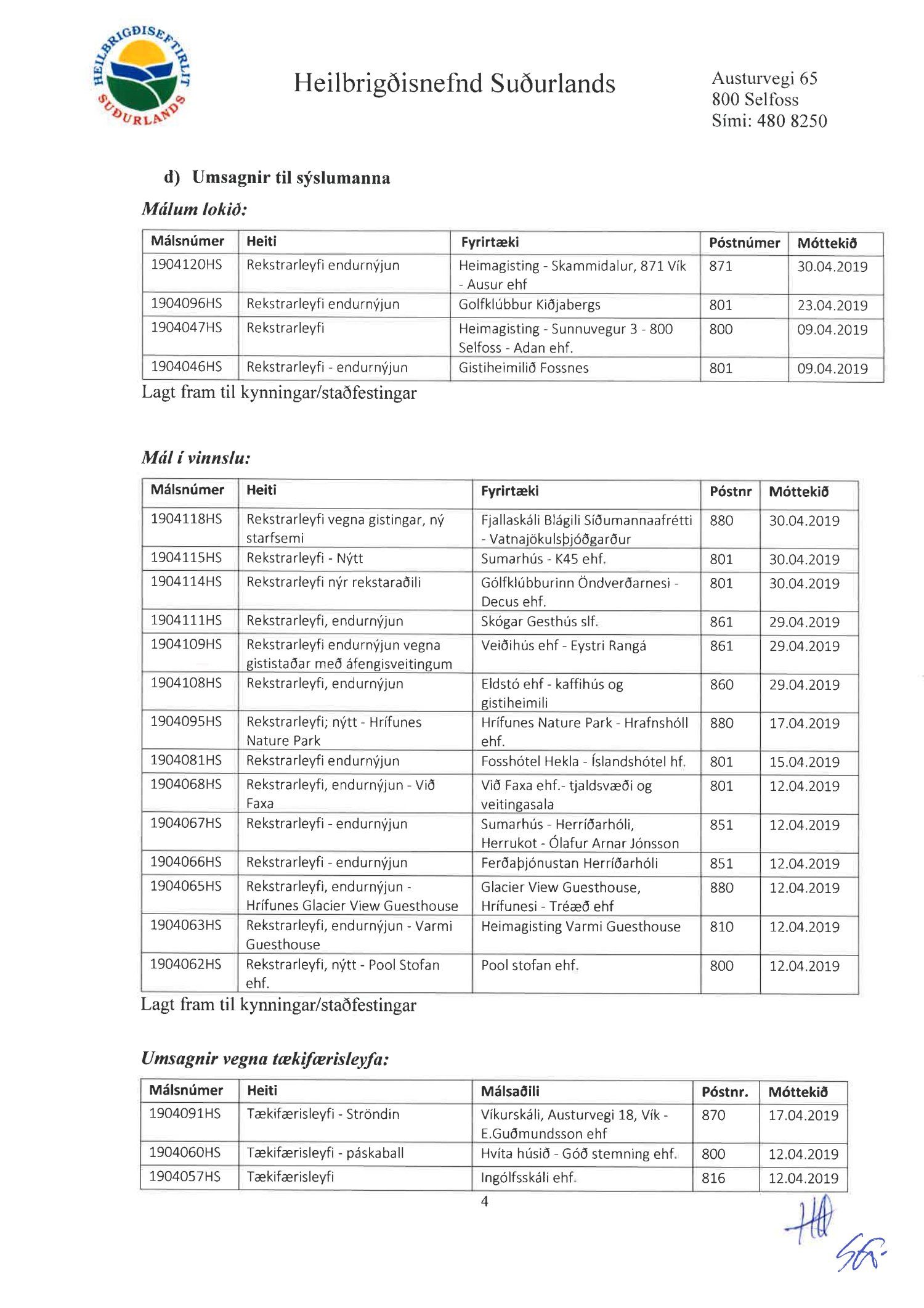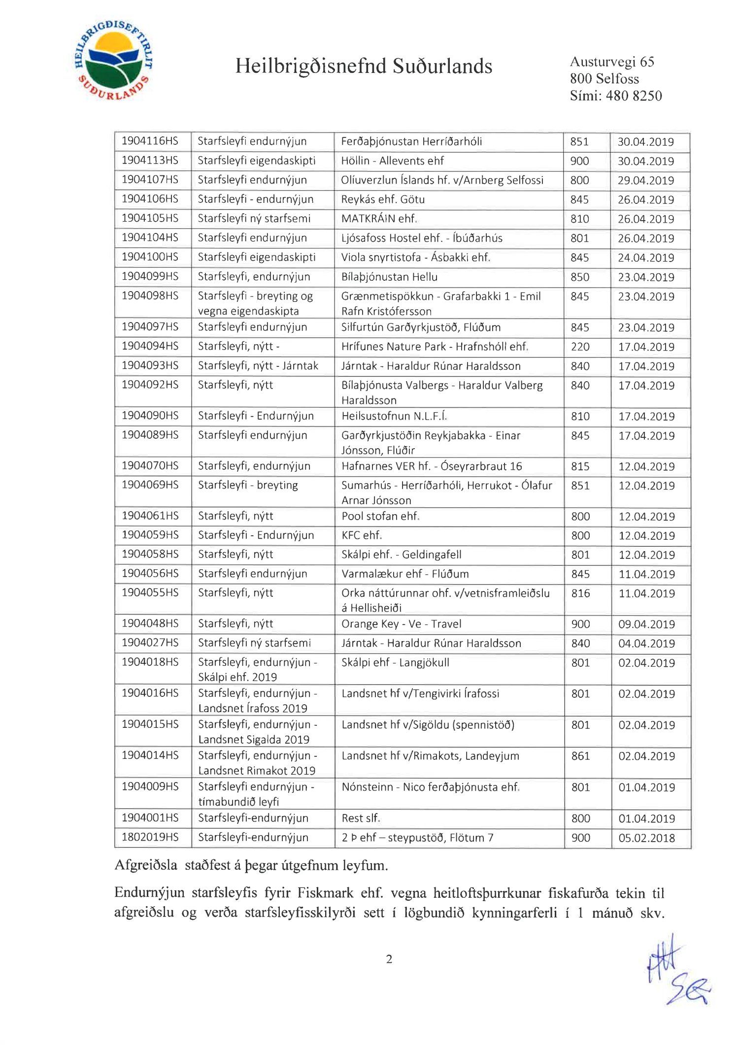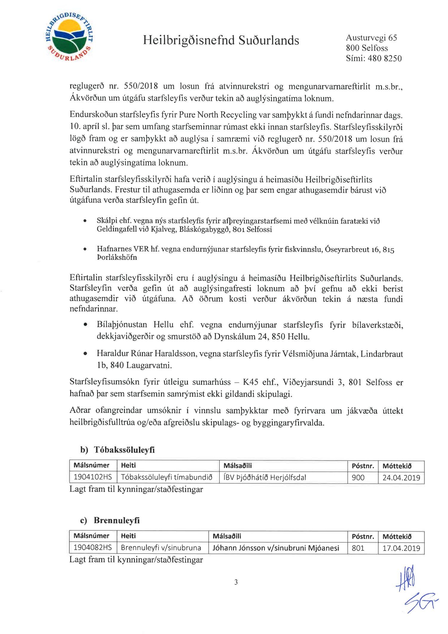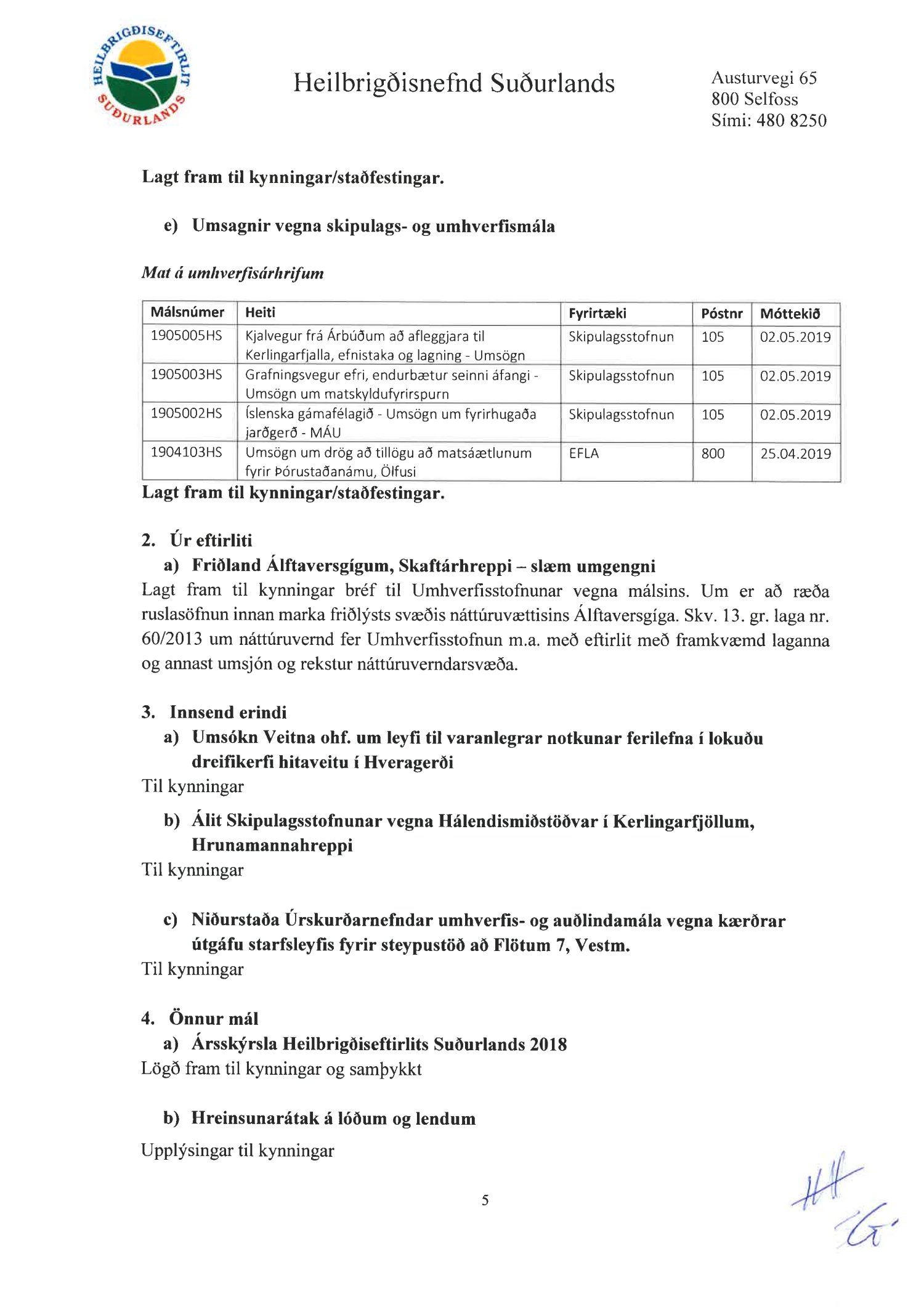 Fundargerðir heilbrigðisnefndar Suðurlands 2019