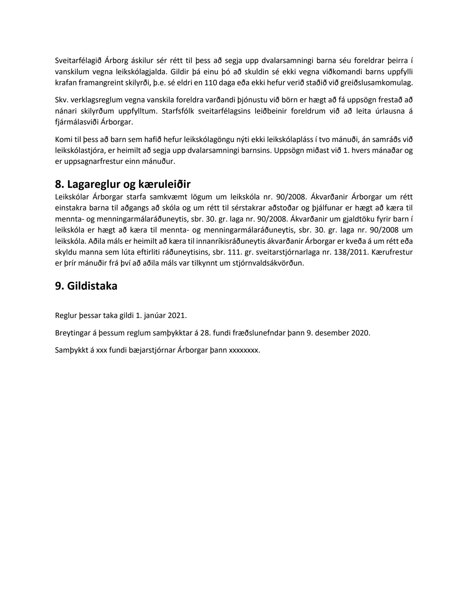 Reglurnar eru bornar undir atkvæði og samþykktar samhljóða með 9 atkvæðum.