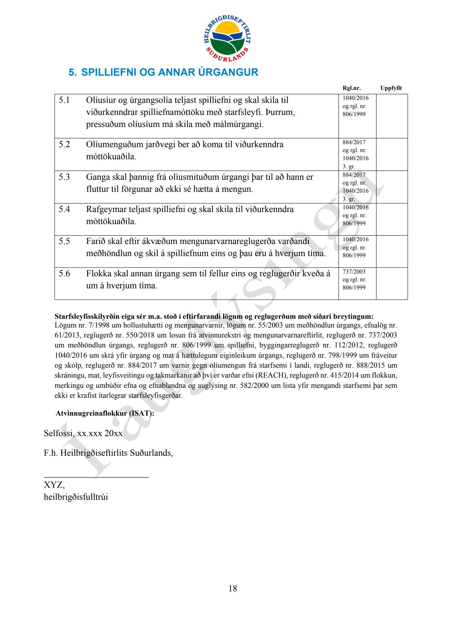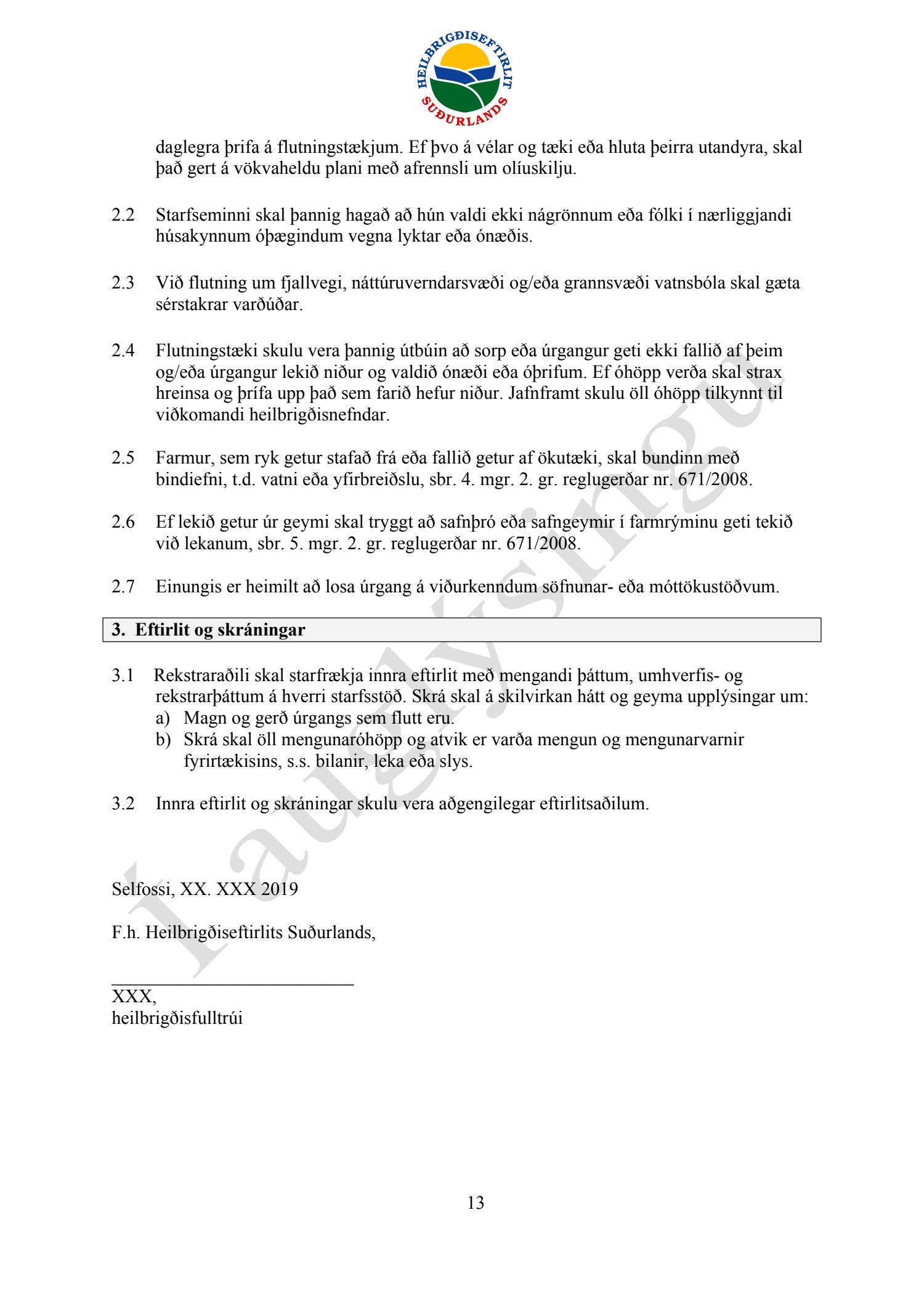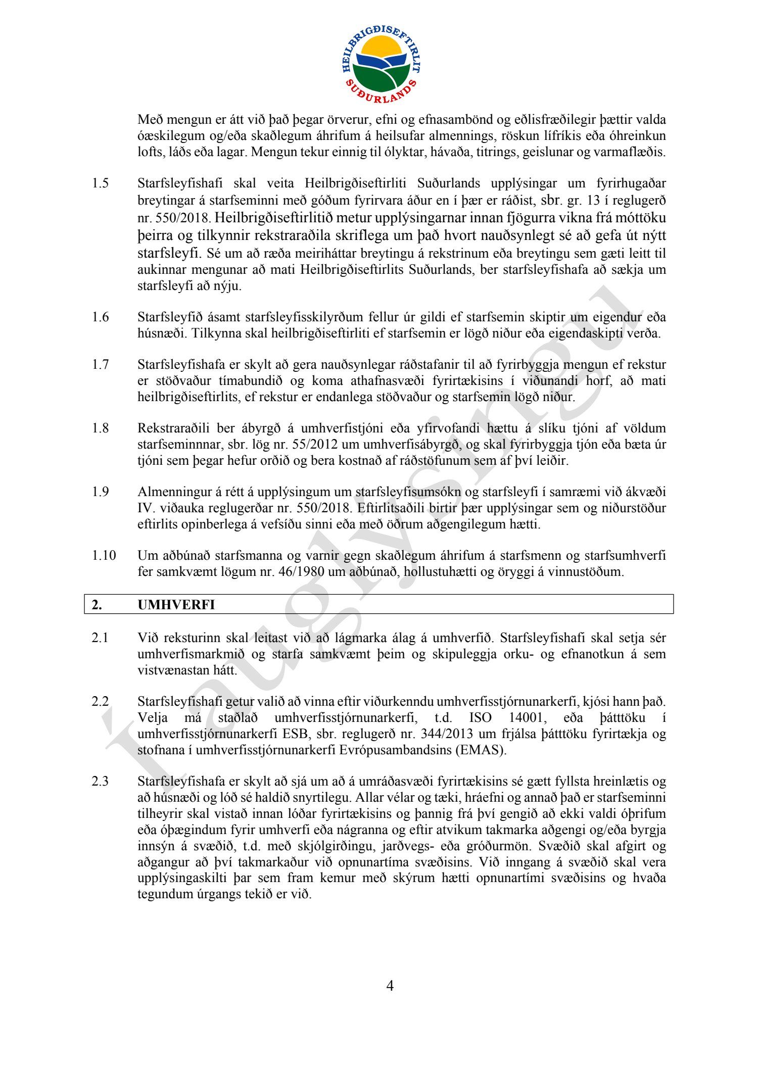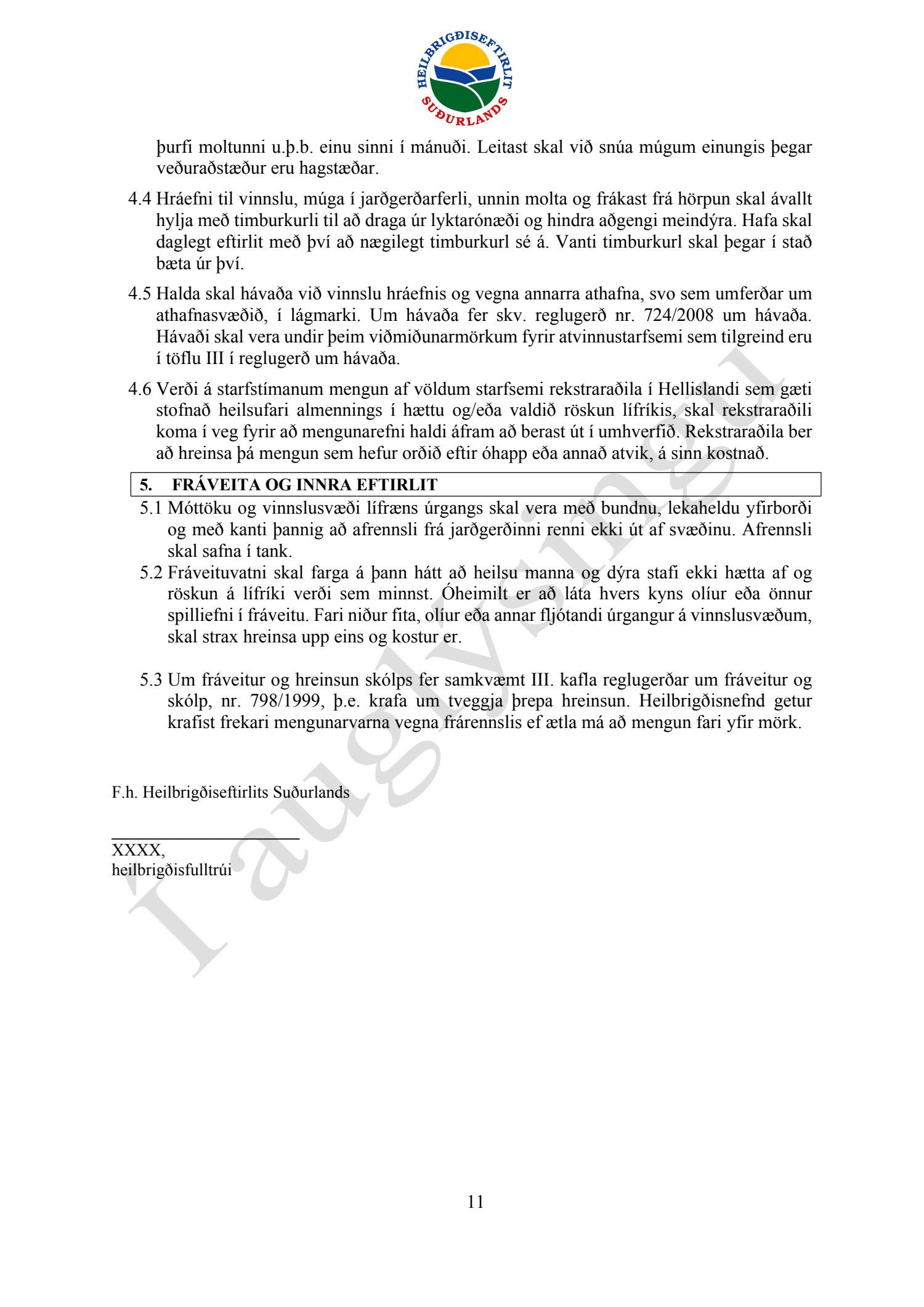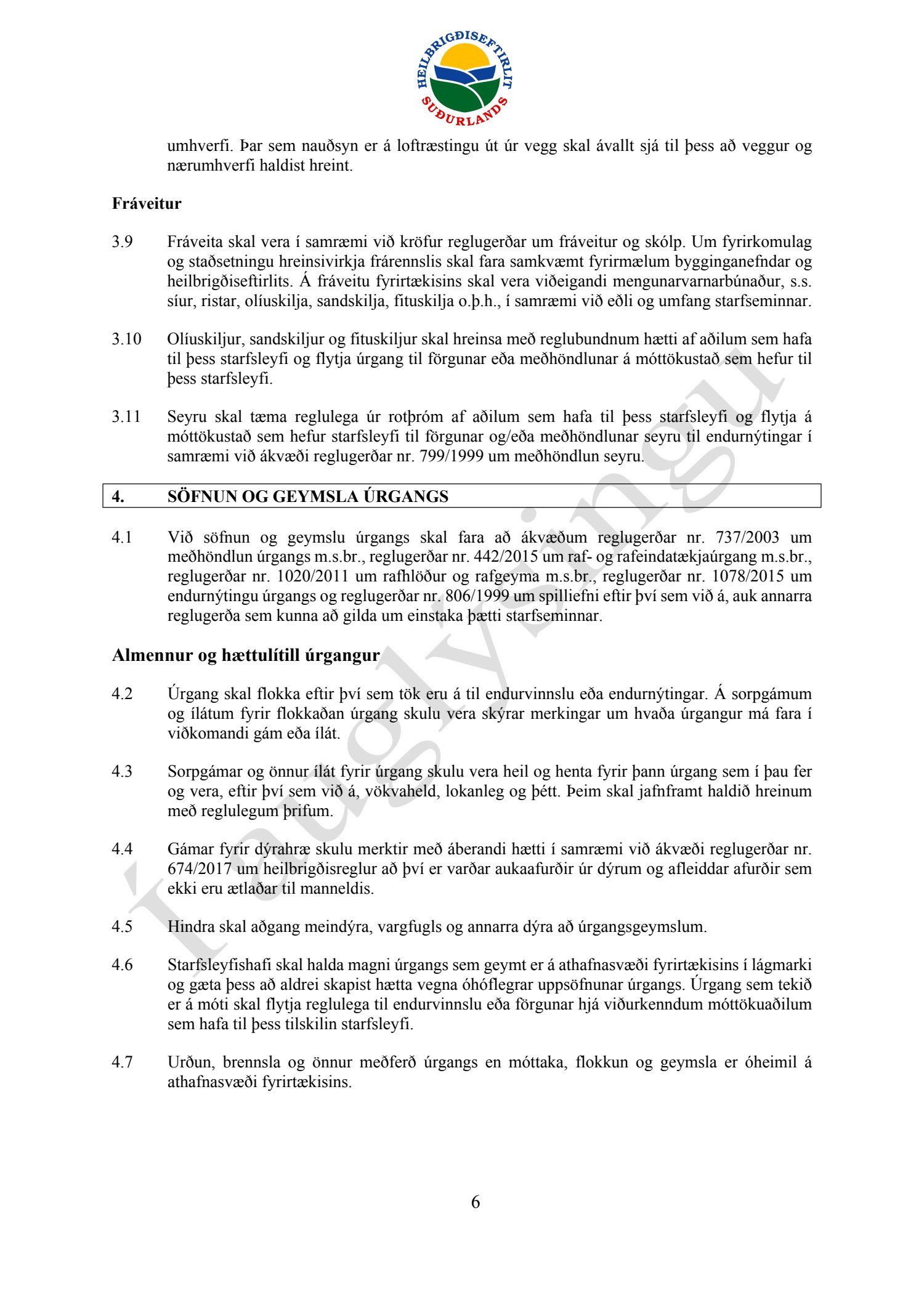 Starfsleyfisskilyrði frá Heilbrigðiseftirliti Suðurlands dags. 21. ágúst, fyrir starfsstöð Íslenska gámafélagið ehf. í Hellislandi.