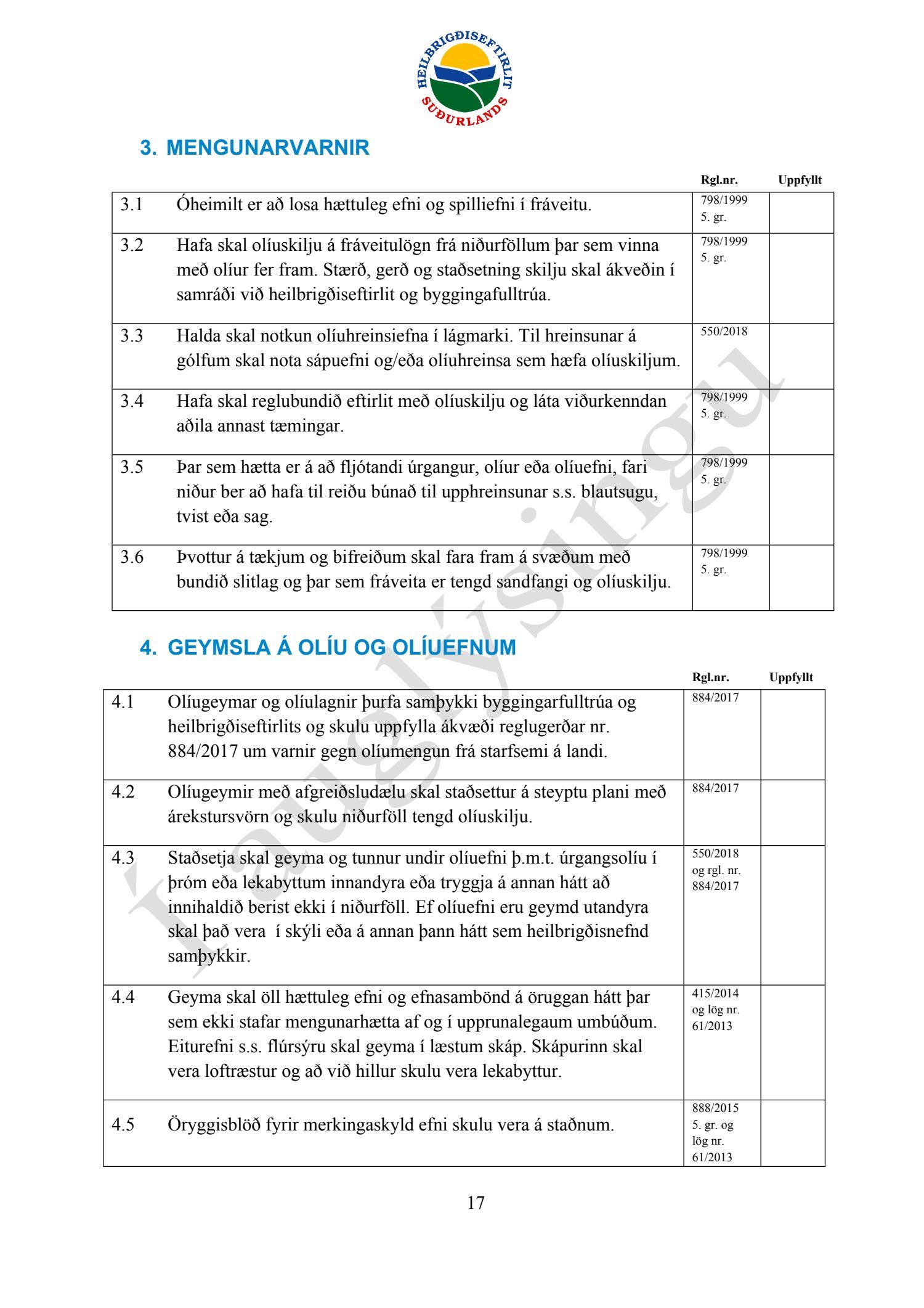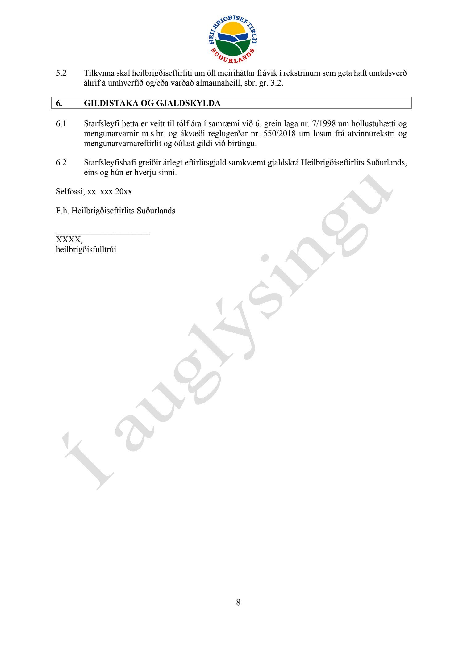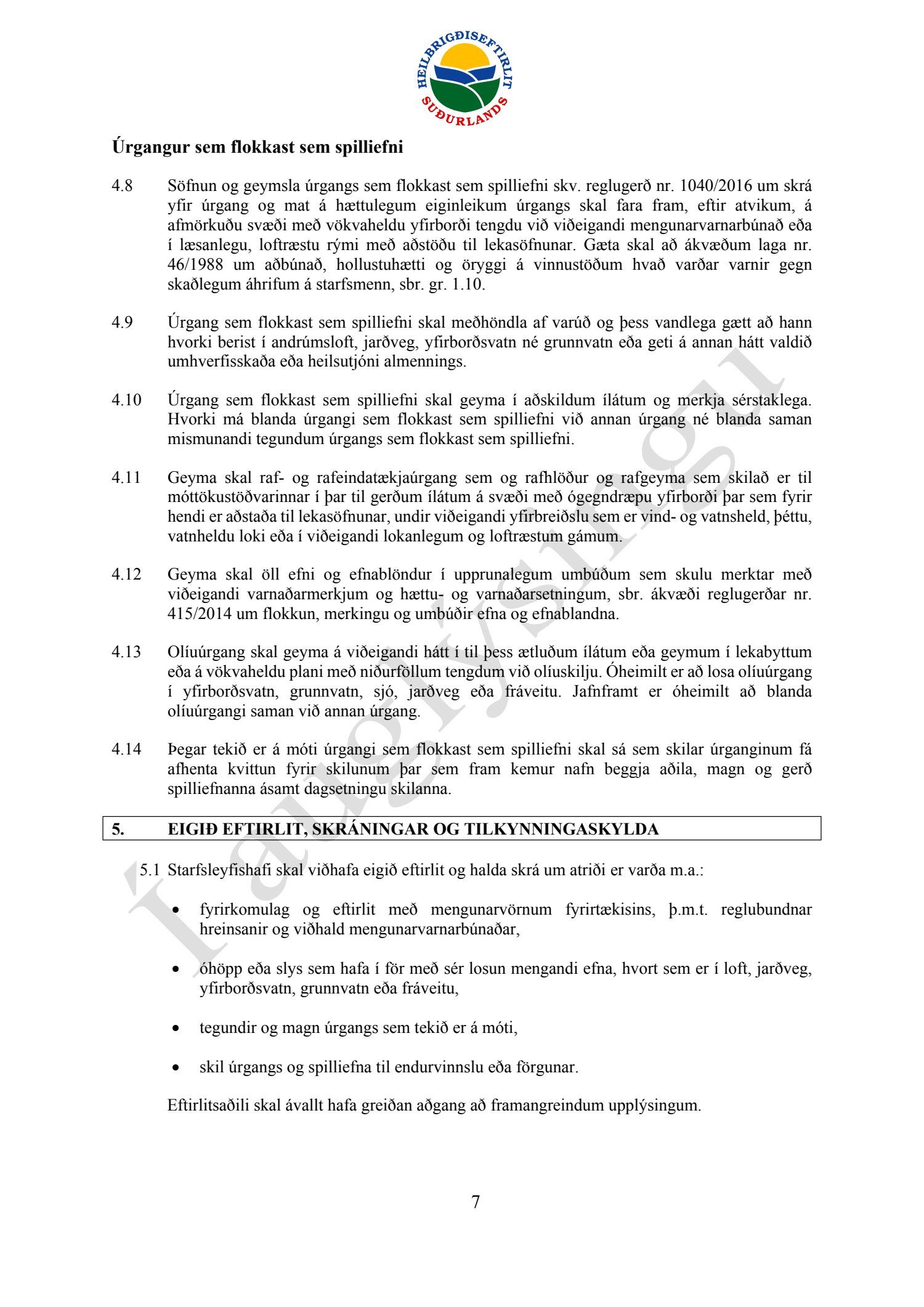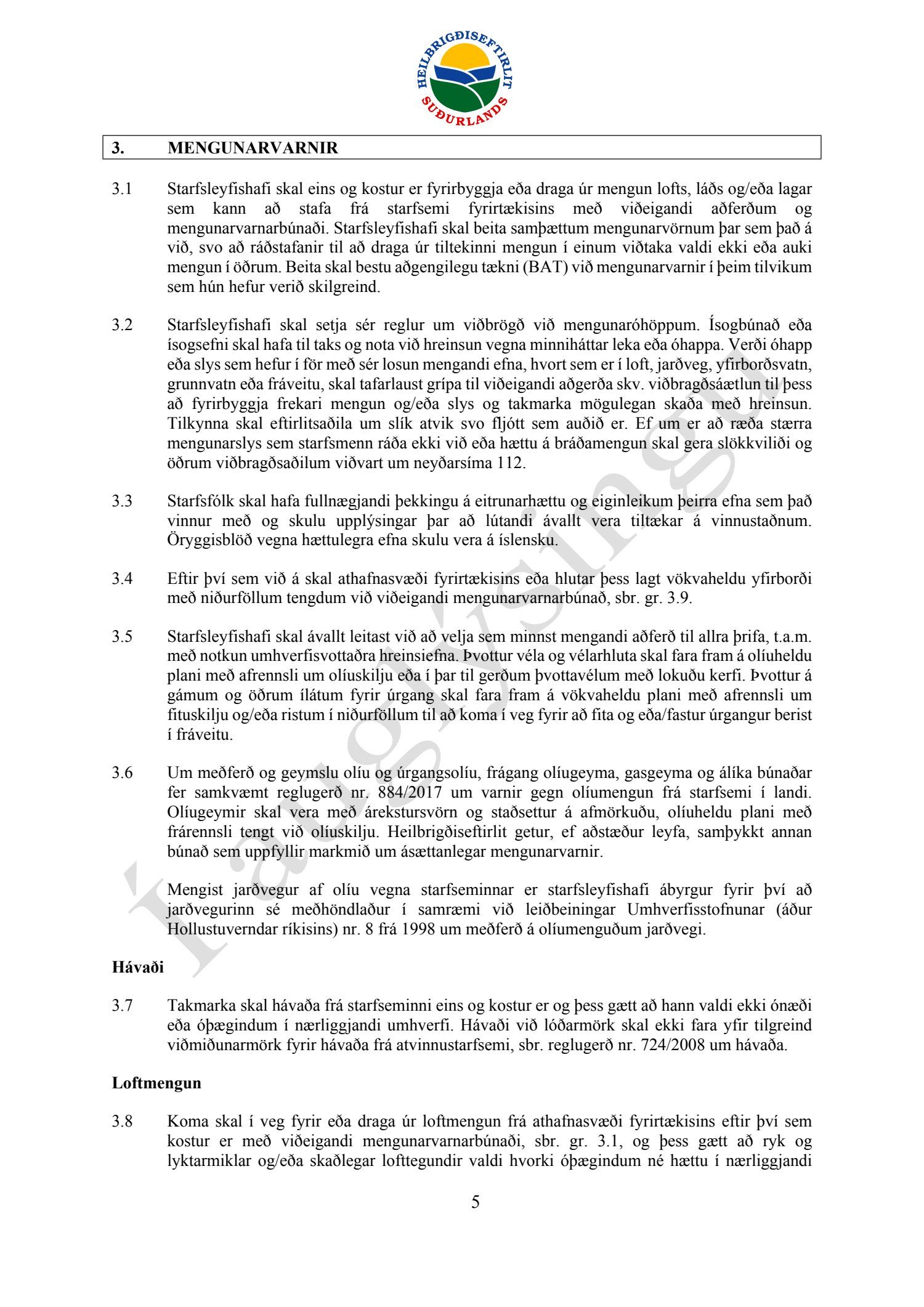 Starfsleyfisskilyrði frá Heilbrigðiseftirliti Suðurlands dags. 21. ágúst, fyrir starfsstöð Íslenska gámafélagið ehf. í Hellislandi.
