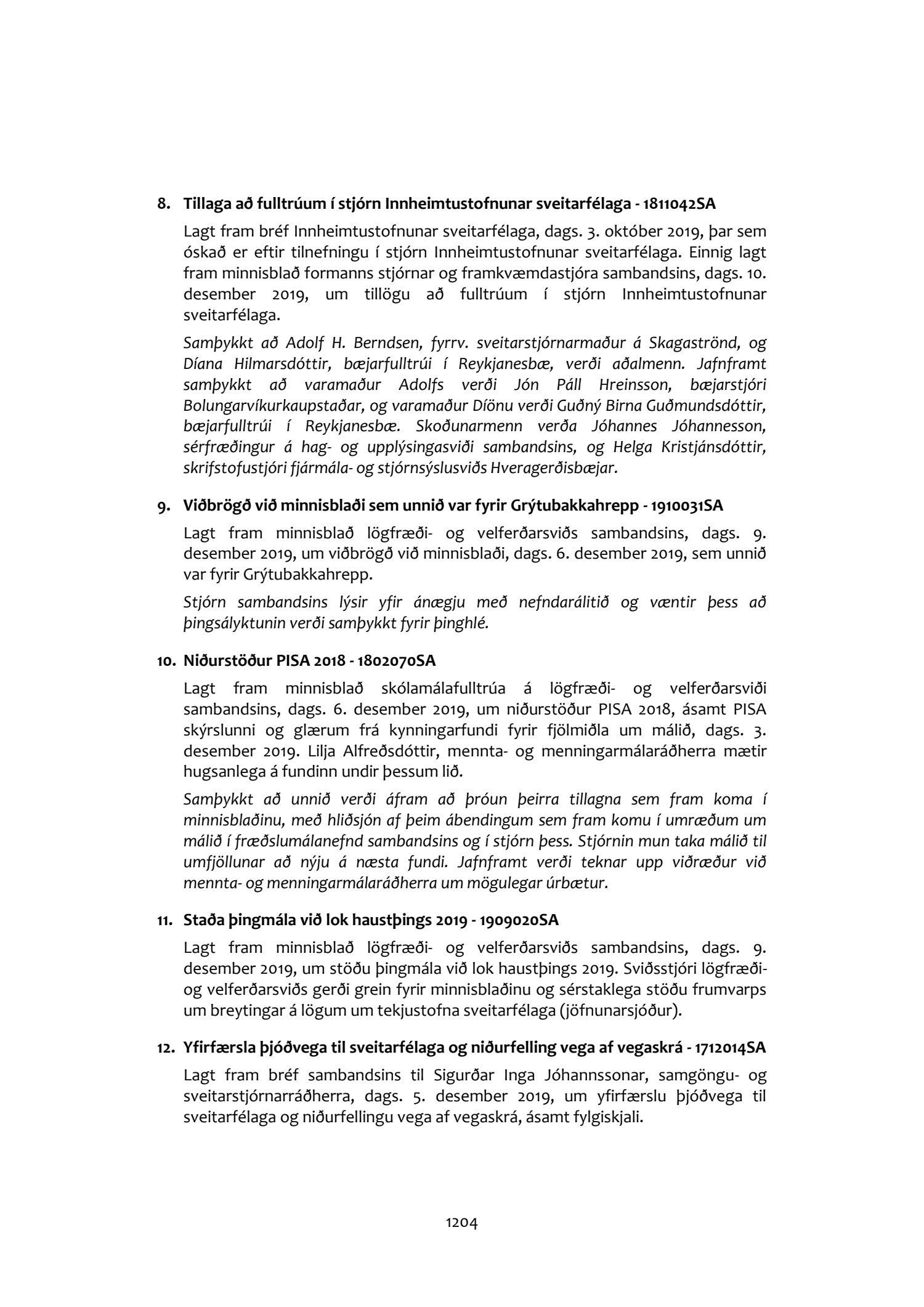 Fundargerðir stjórnar Sambands íslenskra sveitarfélaga 2019
