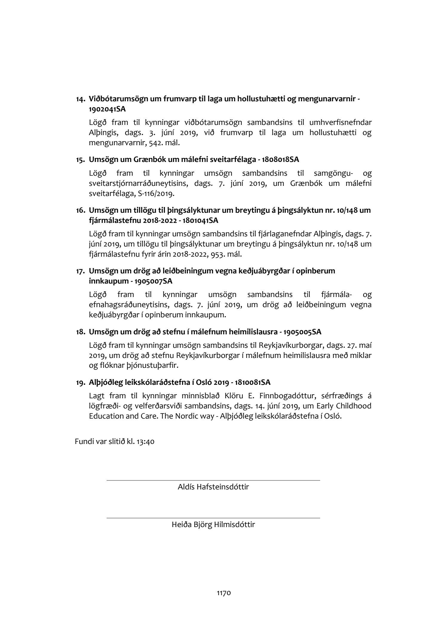 Fundargerðir stjórnar Sambands íslenskra sveitarfélaga 2019