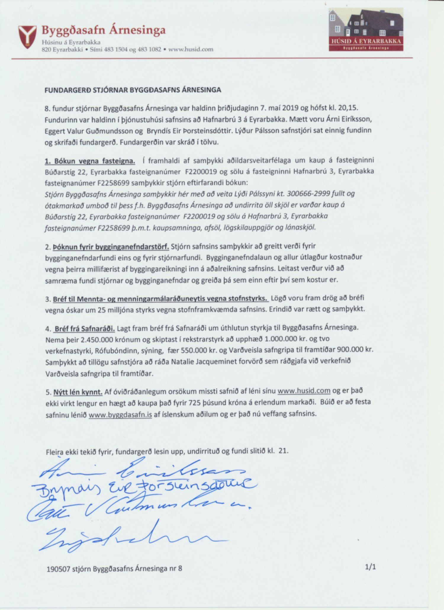 8. fundargerð stjórnar Byggðasafns Árnesinga, 7. maí 2019.pdf