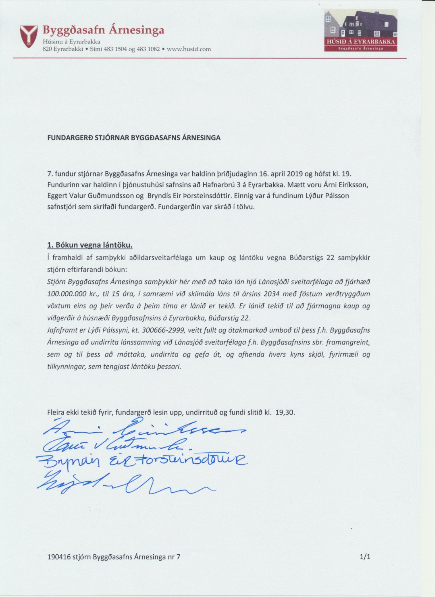 Fundargerðir stjórnar Byggðasafns Árnesinga 2019