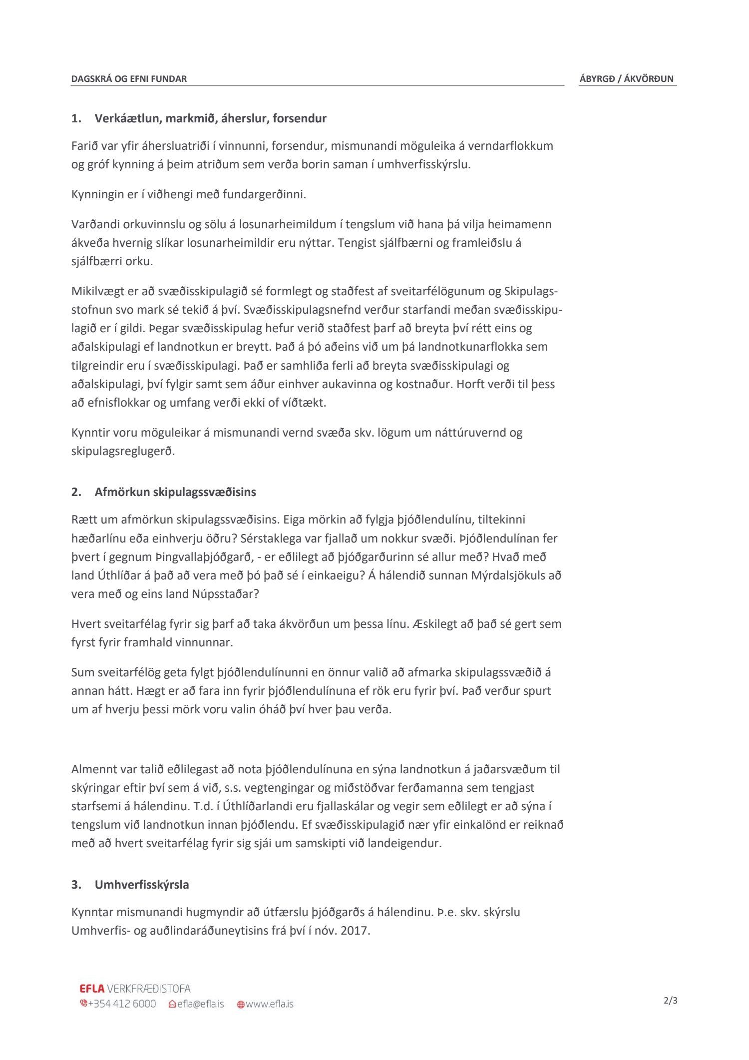Í fundargerðinni frá 30. júní er óskað eftir afstöðu sveitarfélaga til afmörkunar skipulagssvæðisins, s.s. hvort fylgja eigi þjóðlendulínu eða afmarka svæðið á annan hátt.