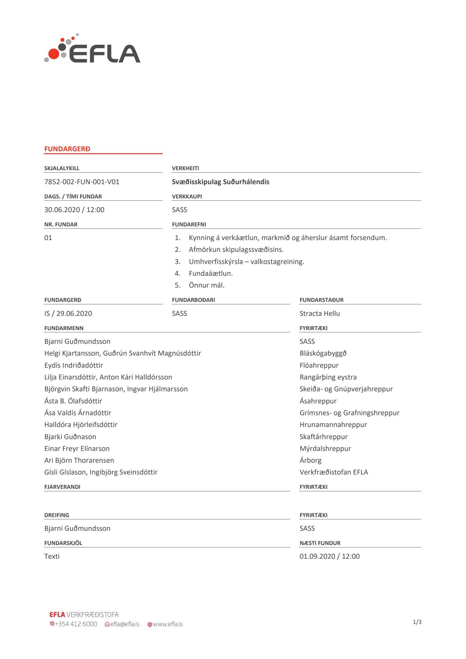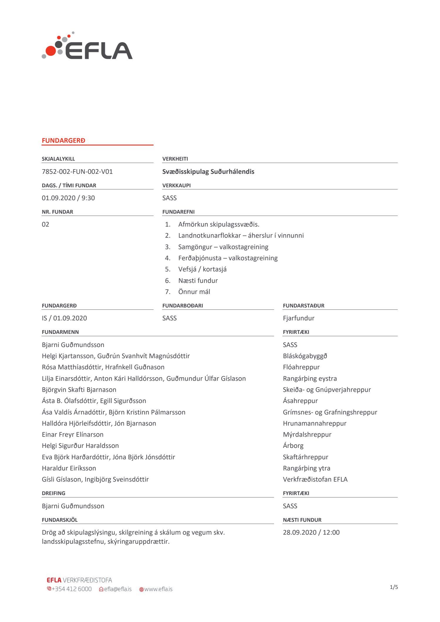 Fundargerðir vegna Svæðisskipulags Suðurhálendisins lagar fram.
