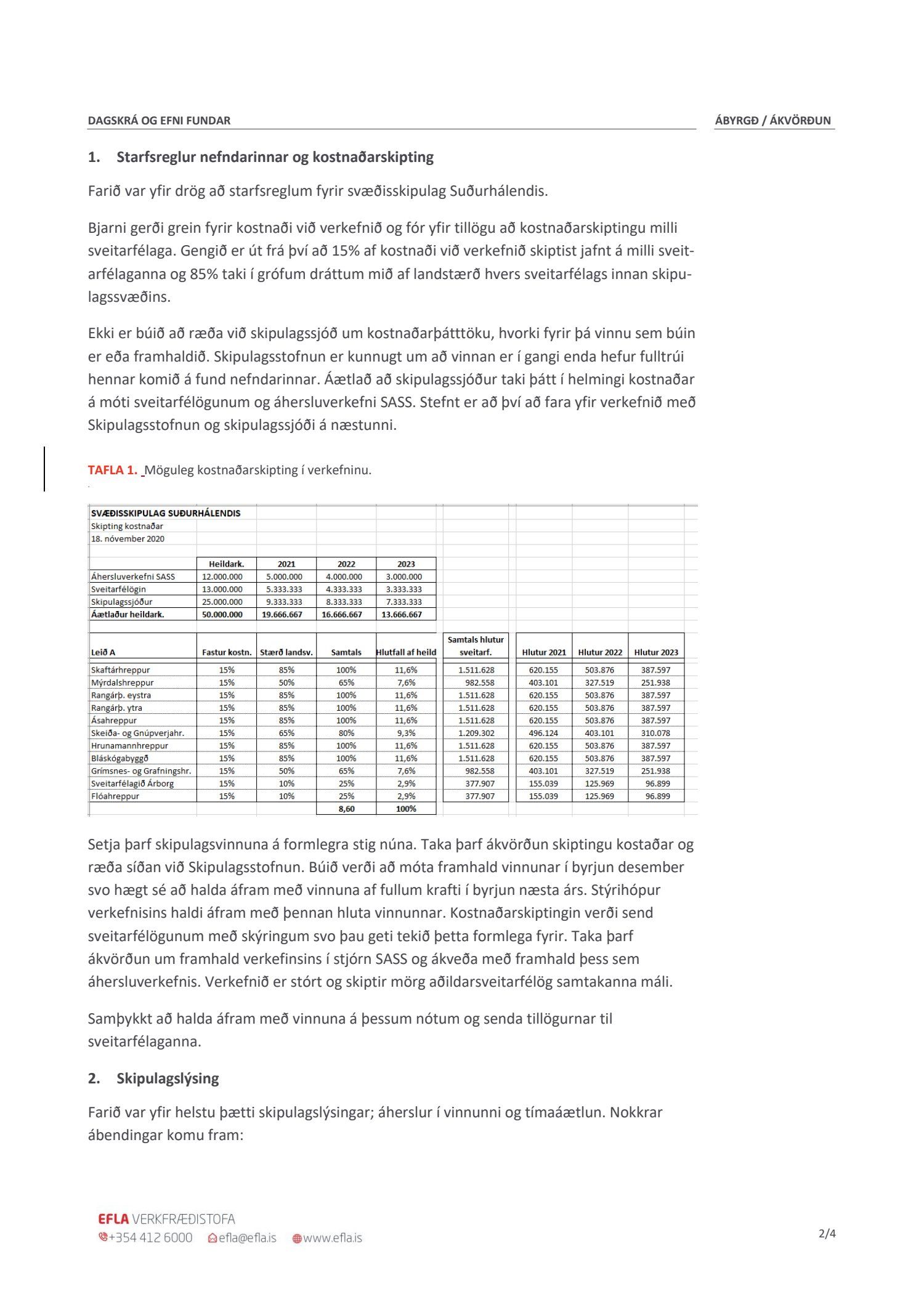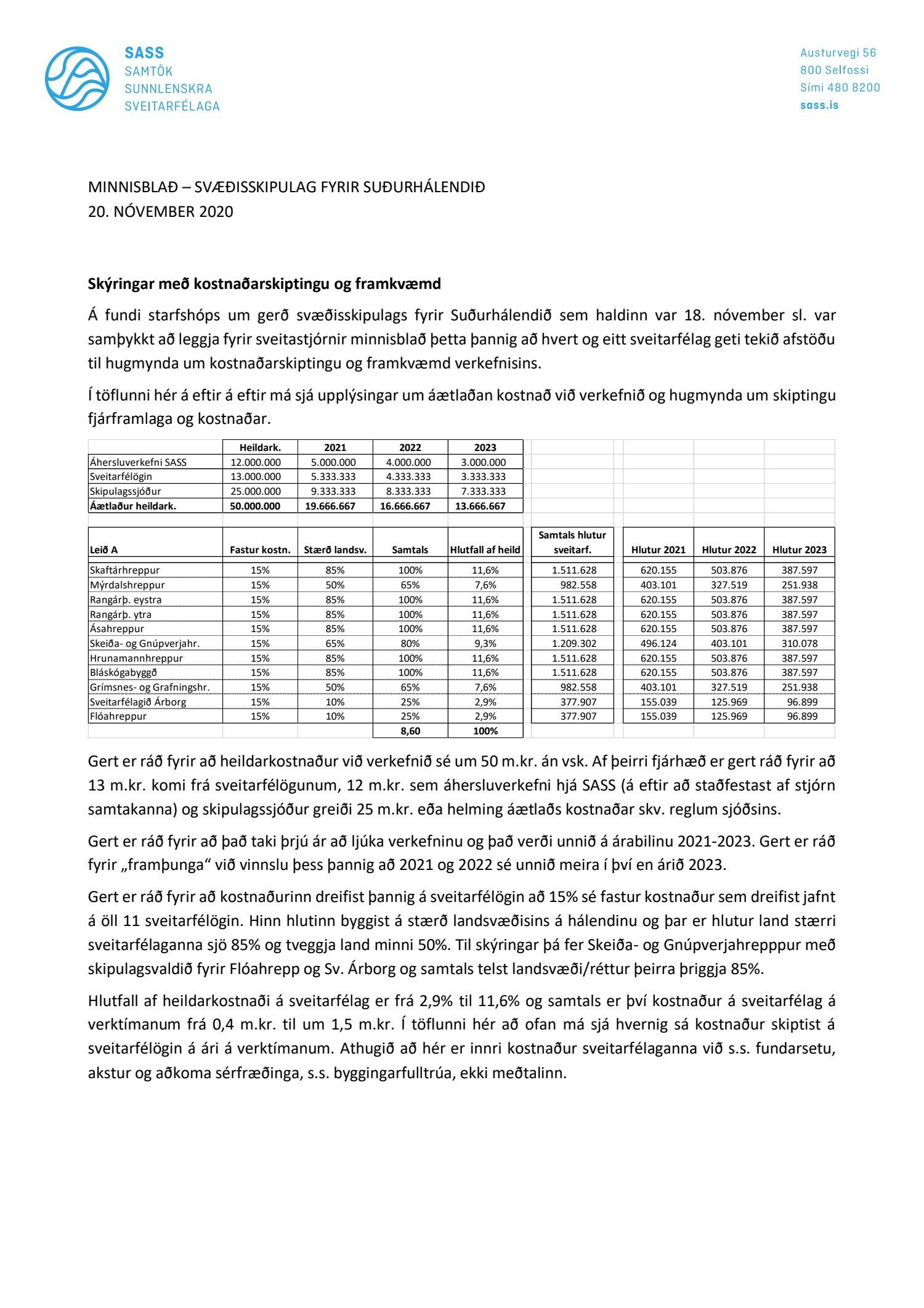 - að skipting kostnaðar sveitarfélaganna byggi á töflu sem fram kemur í minnisblaðinu.