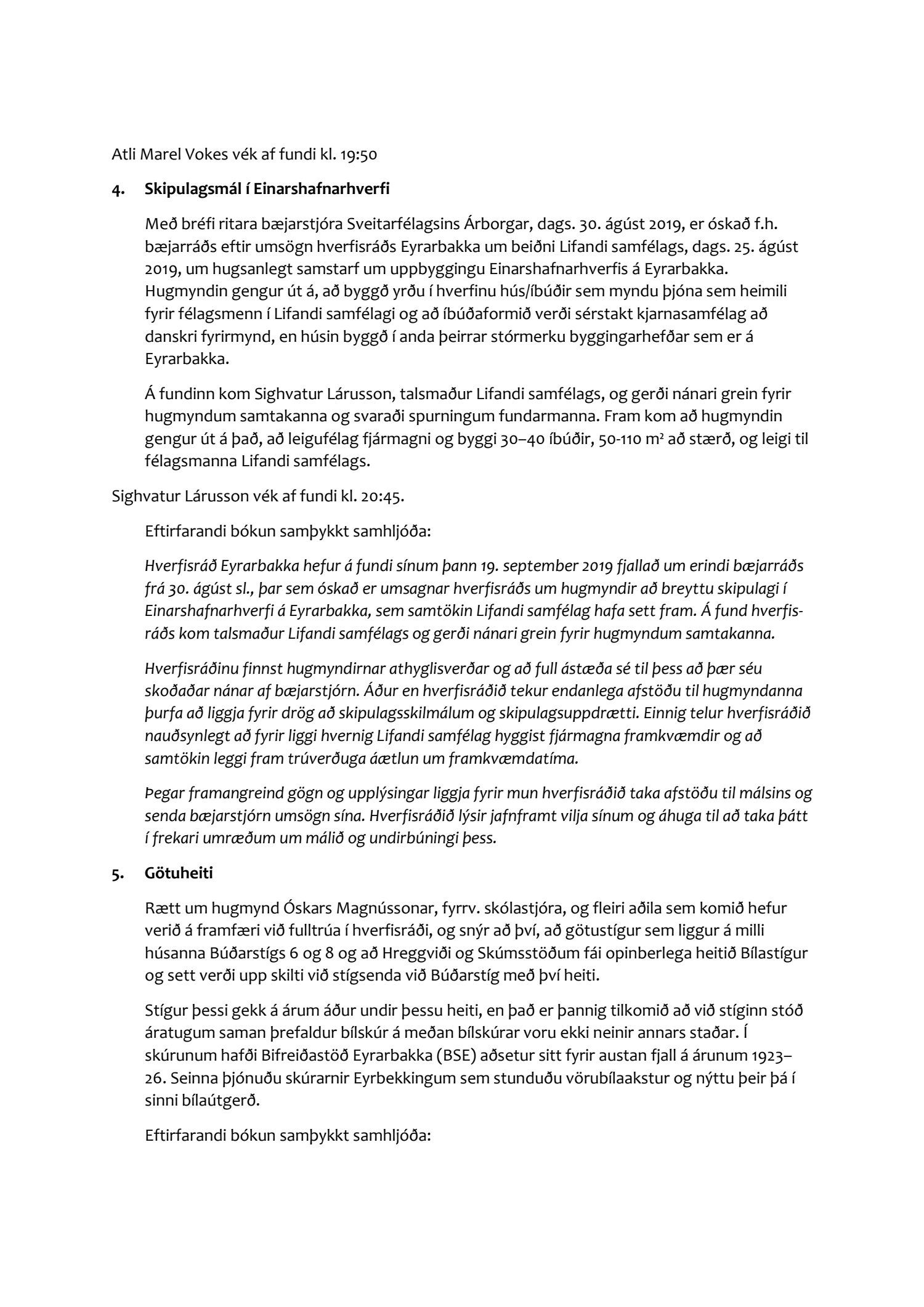 3. Bæjarráð óskar eftir því við skipulags- og byggingarnefnd að nefndin taki afstöðu til hugmynda að breyttu skipulagi í Einarshafnarhverfi á Eyrarbakka sem samtökin Lifandi samfélag hafa sett fram.