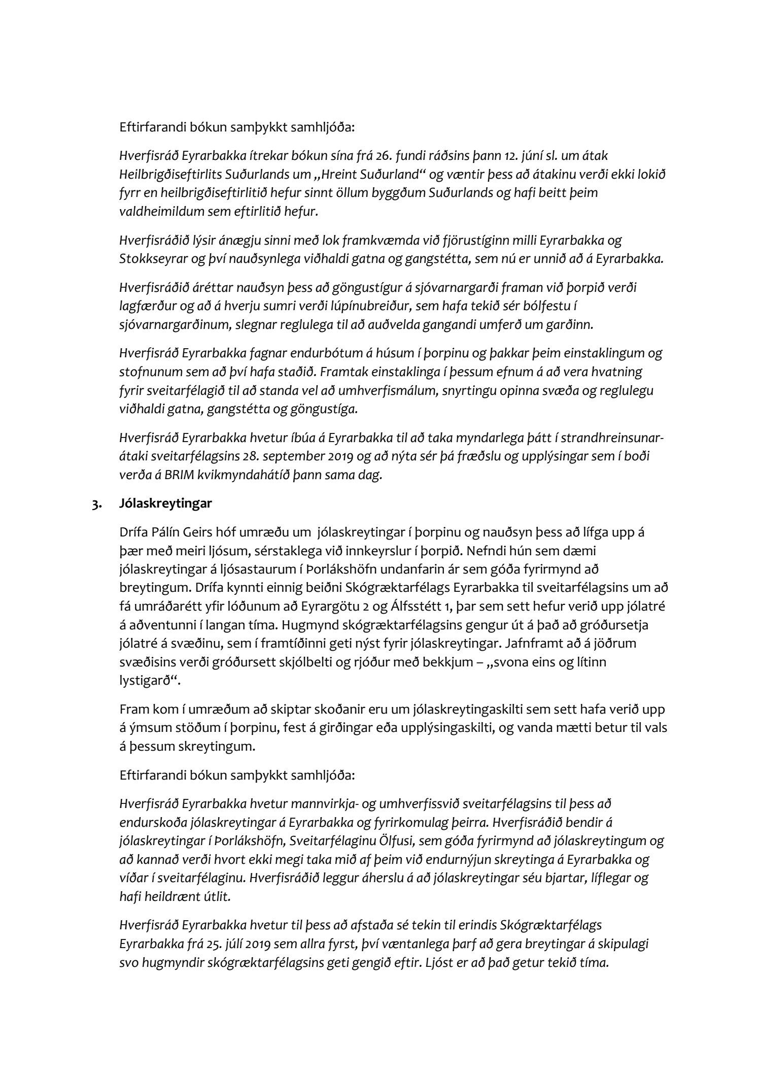 1. Bæjarráð leggur áherslu á að mannvirkja- og umhverfissvið taki jólaskreytingar til endurskoðunar líkt og rætt er í fundargerðinni.