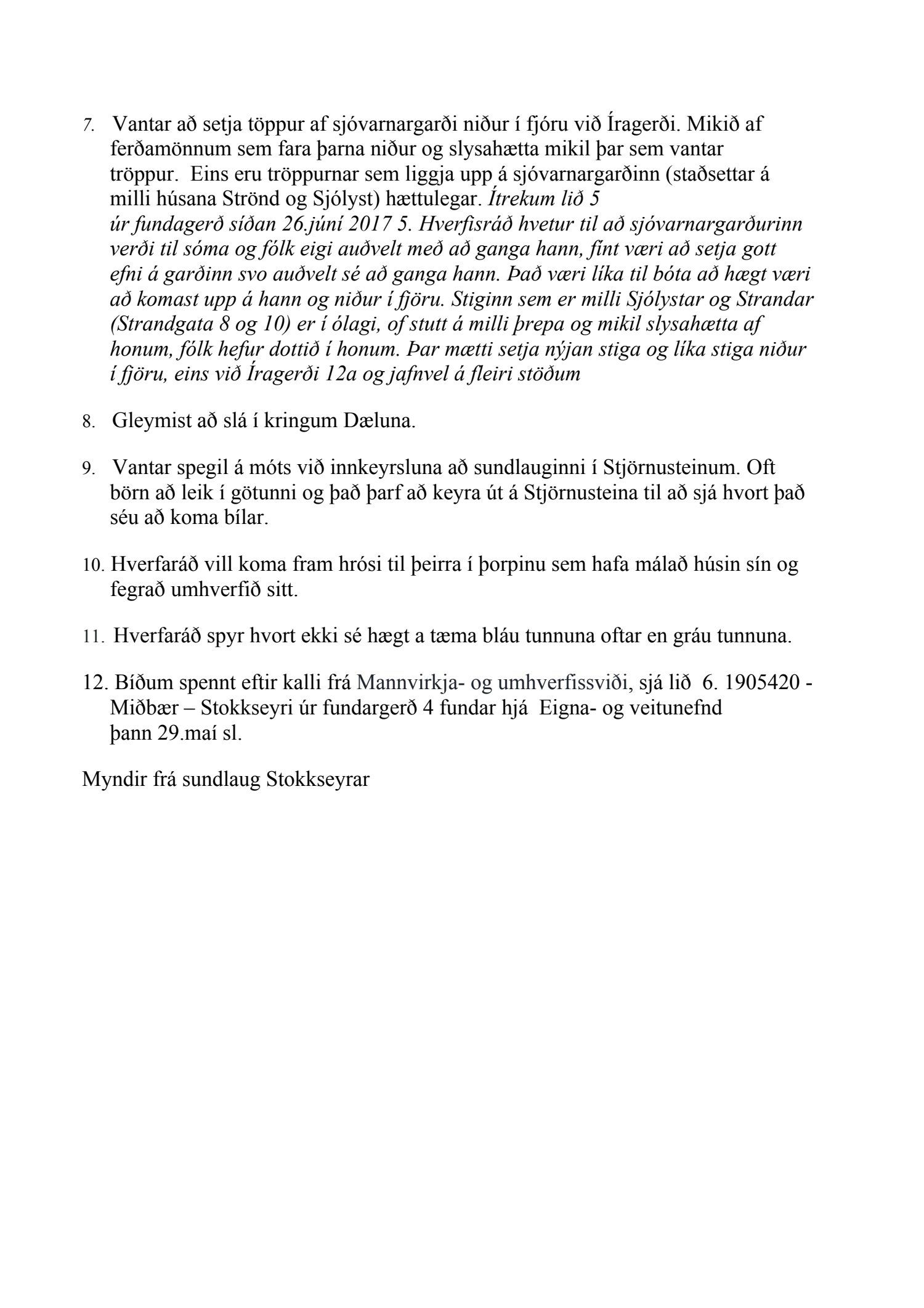Vísað til umhverfisnefndar: 2.,3. og 4. liður.Vísað til eigna- og veitunefndar: 5., 6., 7. og 9. liður.