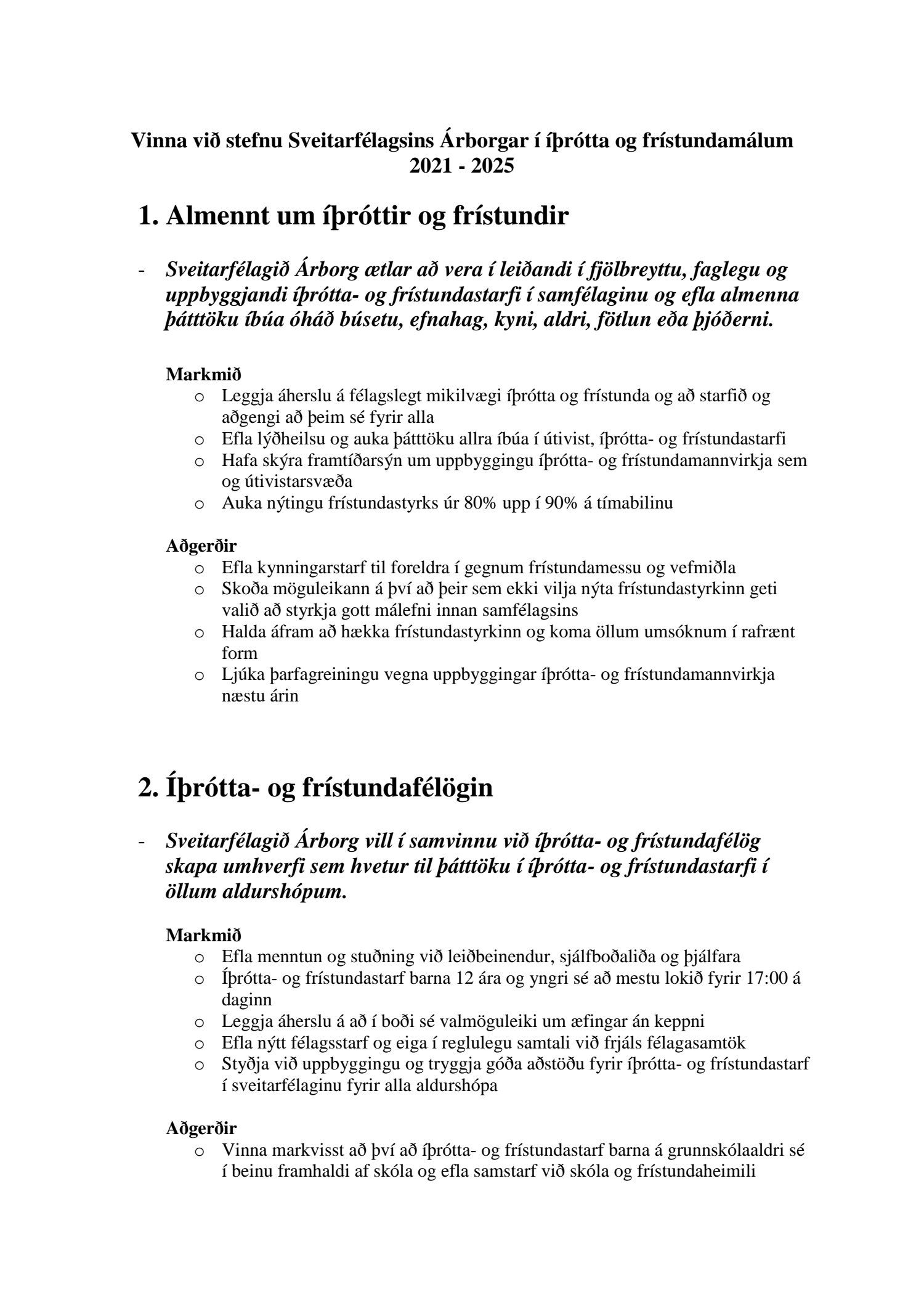 Tillaga frá 18. fundi frístunda- og menningarnefndar frá 8. febrúar sl., liður 4. Íþrótta- og frístundastefna Árborgar. Lokadrög nýrrar íþrótta- og frístundastefnu Árborgar 2021-2025 lögð fram til umræðu og afgreiðslu.