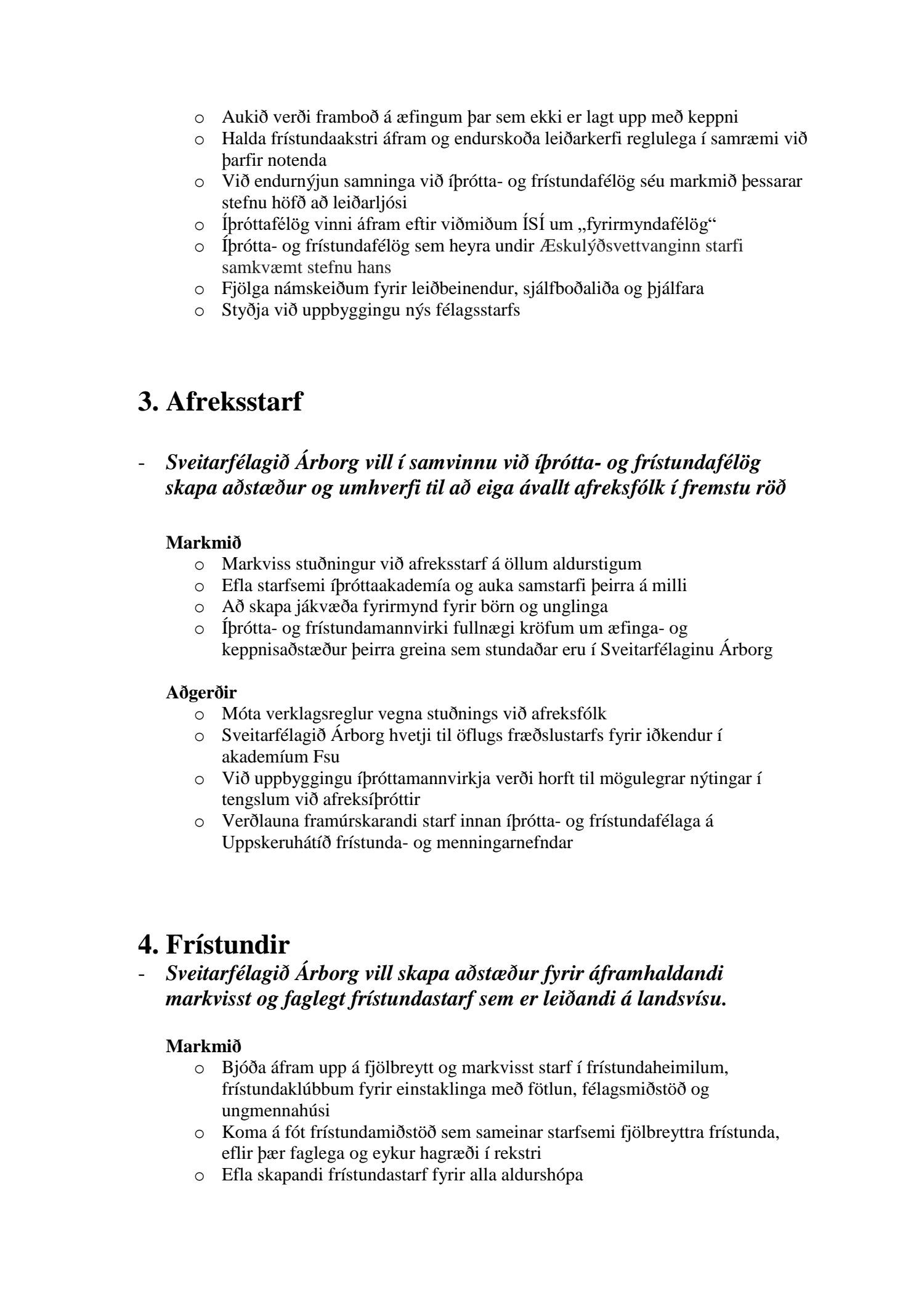 Frístunda- og menningarnefnd samþykkti fyrir sitt leyti fyrirlagða tillögu að nýrri íþrótta- og frístundastefnu Sveitarfélagsins Árborgar 2021-2025 og lagði til við bæjarstjórn að stefnan yrði samþykkt og kynnt öðrum fagnefndum sveitarfélagsins.