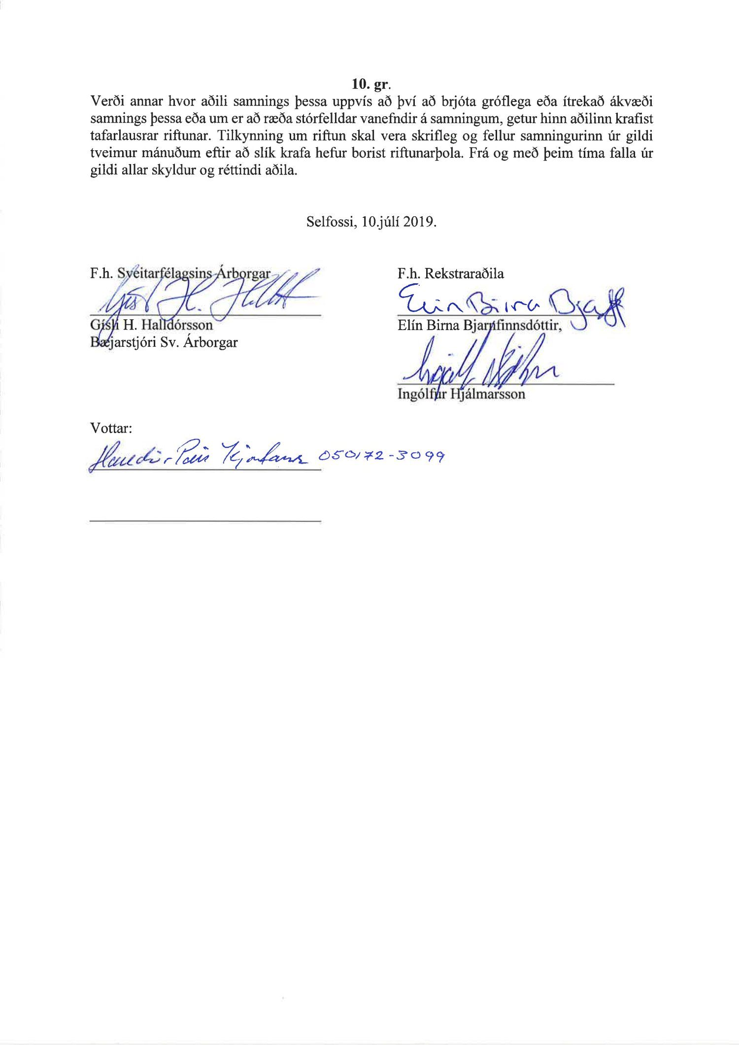Bæjarráð staðfestir framlagðan samning.