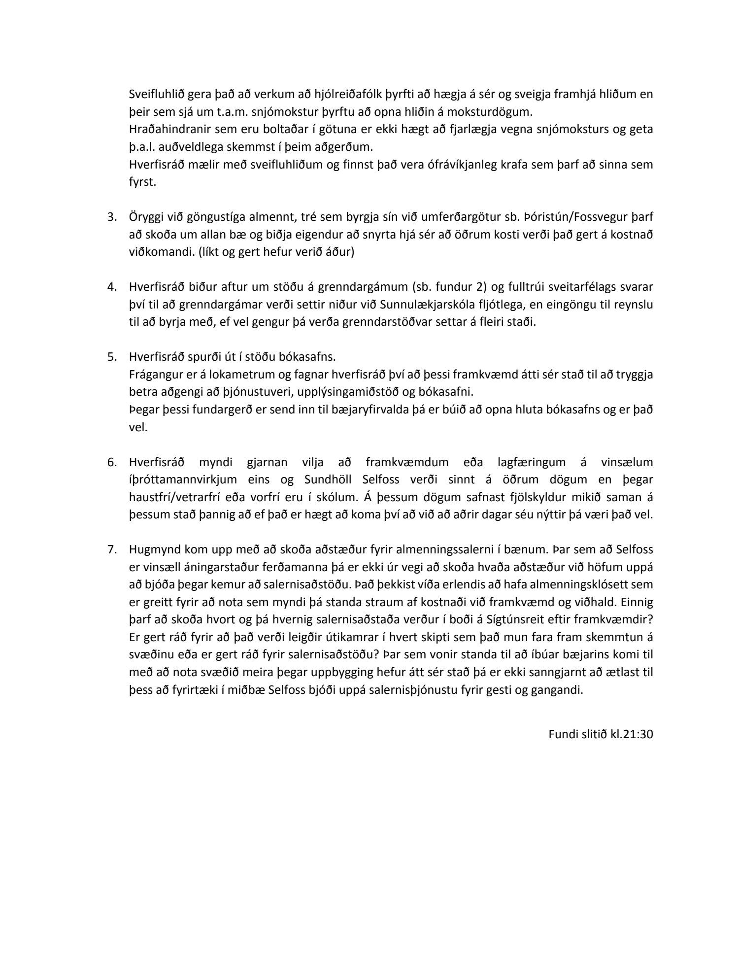 Bæjarráð vísar 1., 2. og 7. lið til Eigna- og veitunefndar og 3. lið til Umhverfisnefndar til umfjöllunar.