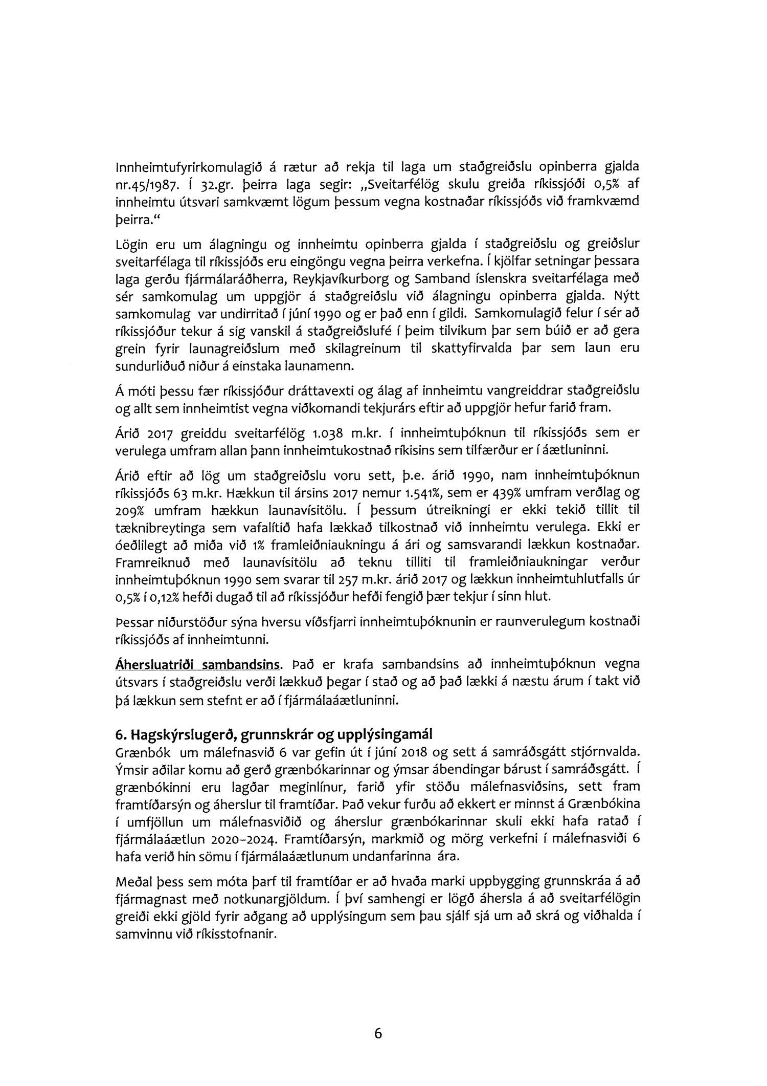 Að innheimtuþóknun sem sveitarfélögin greiða ríkinu fyrir innheimtu útsvars í staðgreiðslu verði lækkuð verulega.
