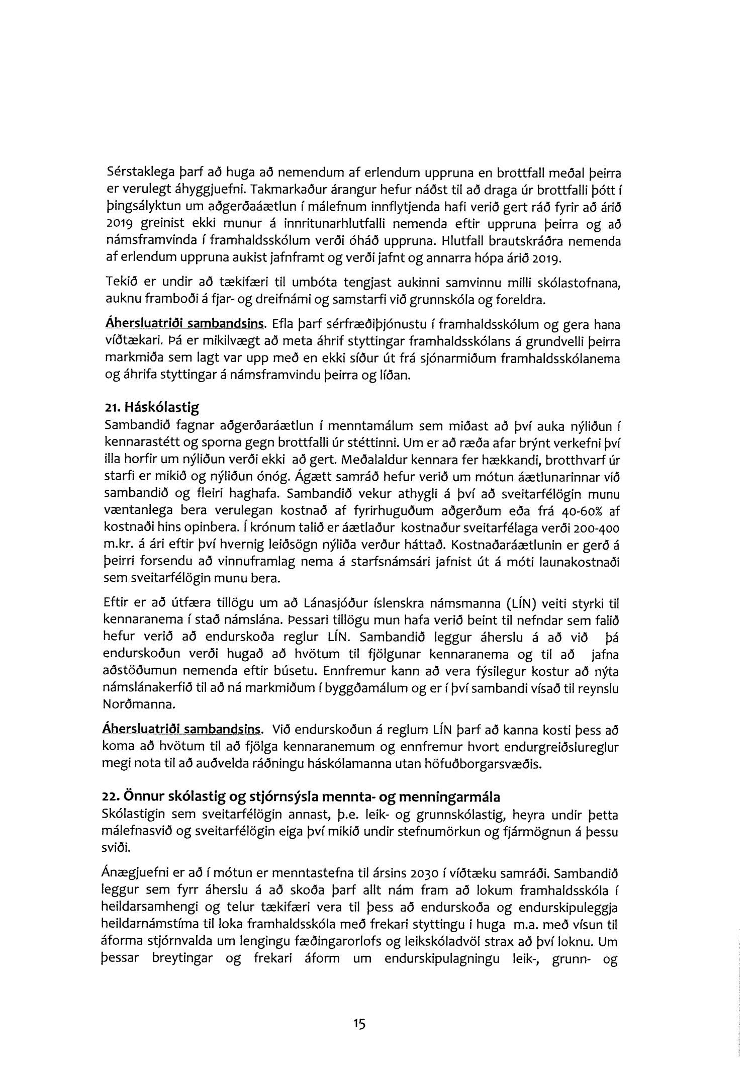 Að unnið verði áfram að umbótum í menntamálum, með áherslu á nýliðun í kennarastétt.