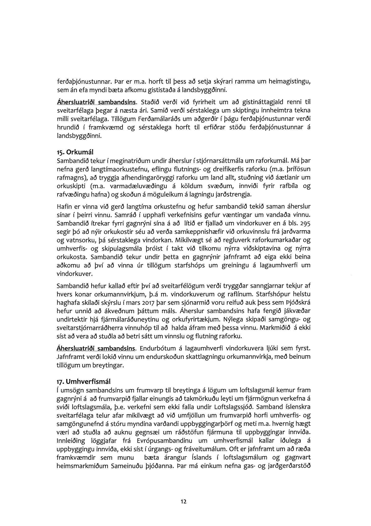 Að tekjur af gistináttaskatti færist til sveitarfélaga og að gripið verði til aðgerða til að bæta stöðu ferðaþjónustufyrirtækja á landsbyggðinni.
