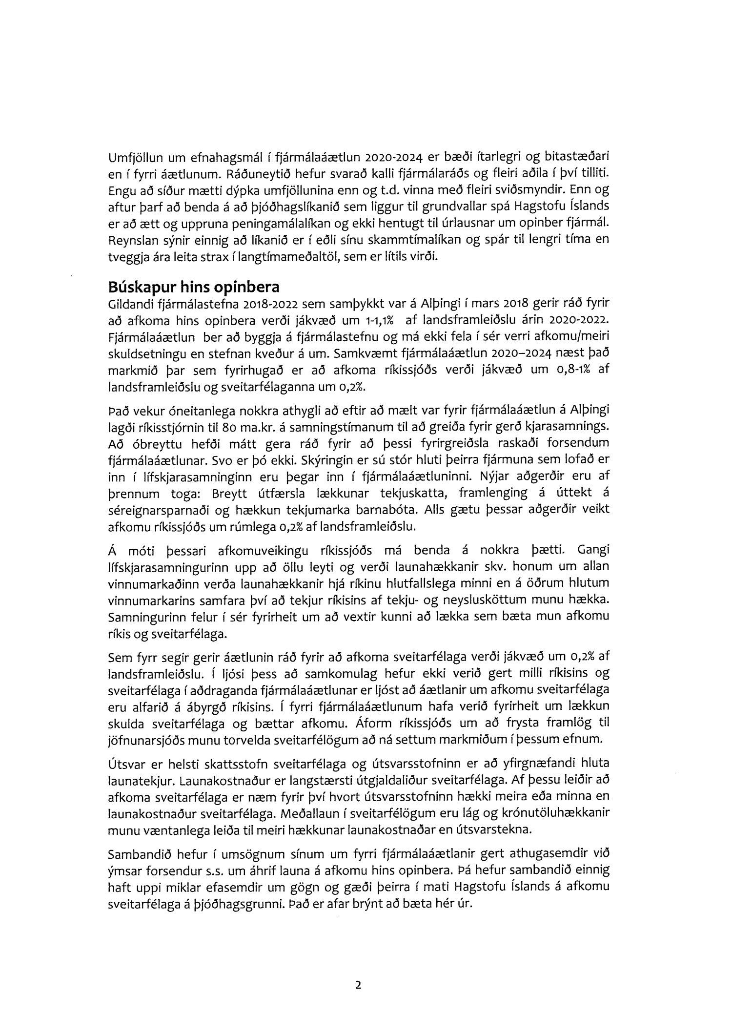 Bæjarráð Sveitarfélagsins Árborgar tekur undir umsögn Sambands íslenskra sveitarfélaga um fjármálaáætlun 2020-2024.