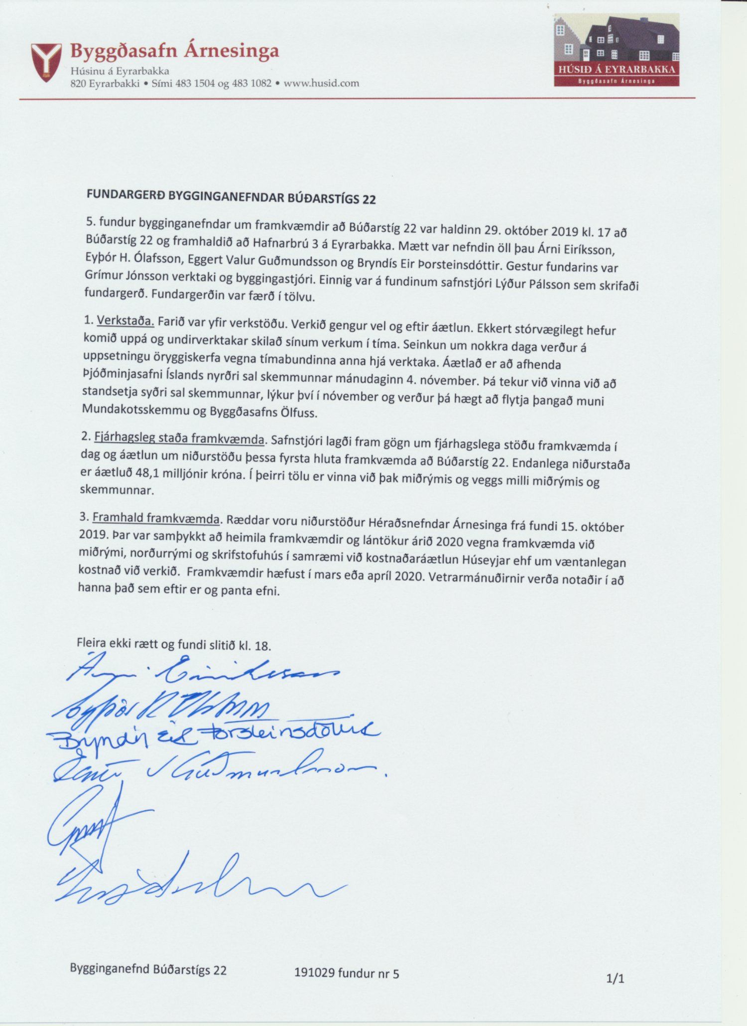 Fundargerðir byggingarnefndar Búðarstígs 22 árin 2019-2020