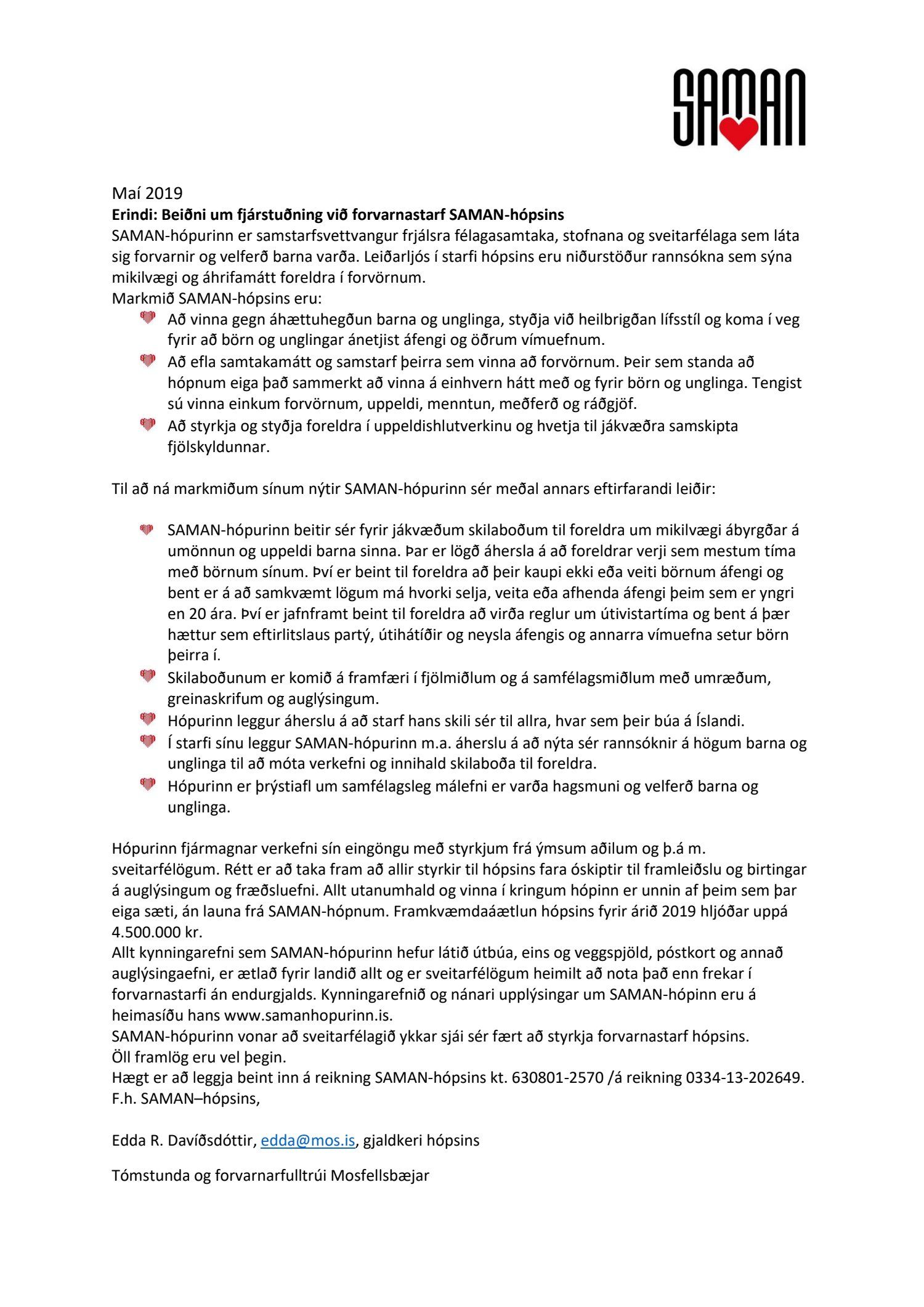 Styrkbeiðni - forvarnarstarf SAMAN-hópsins 2019