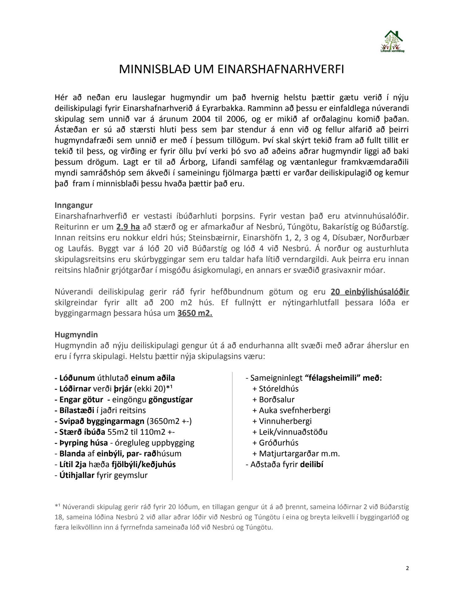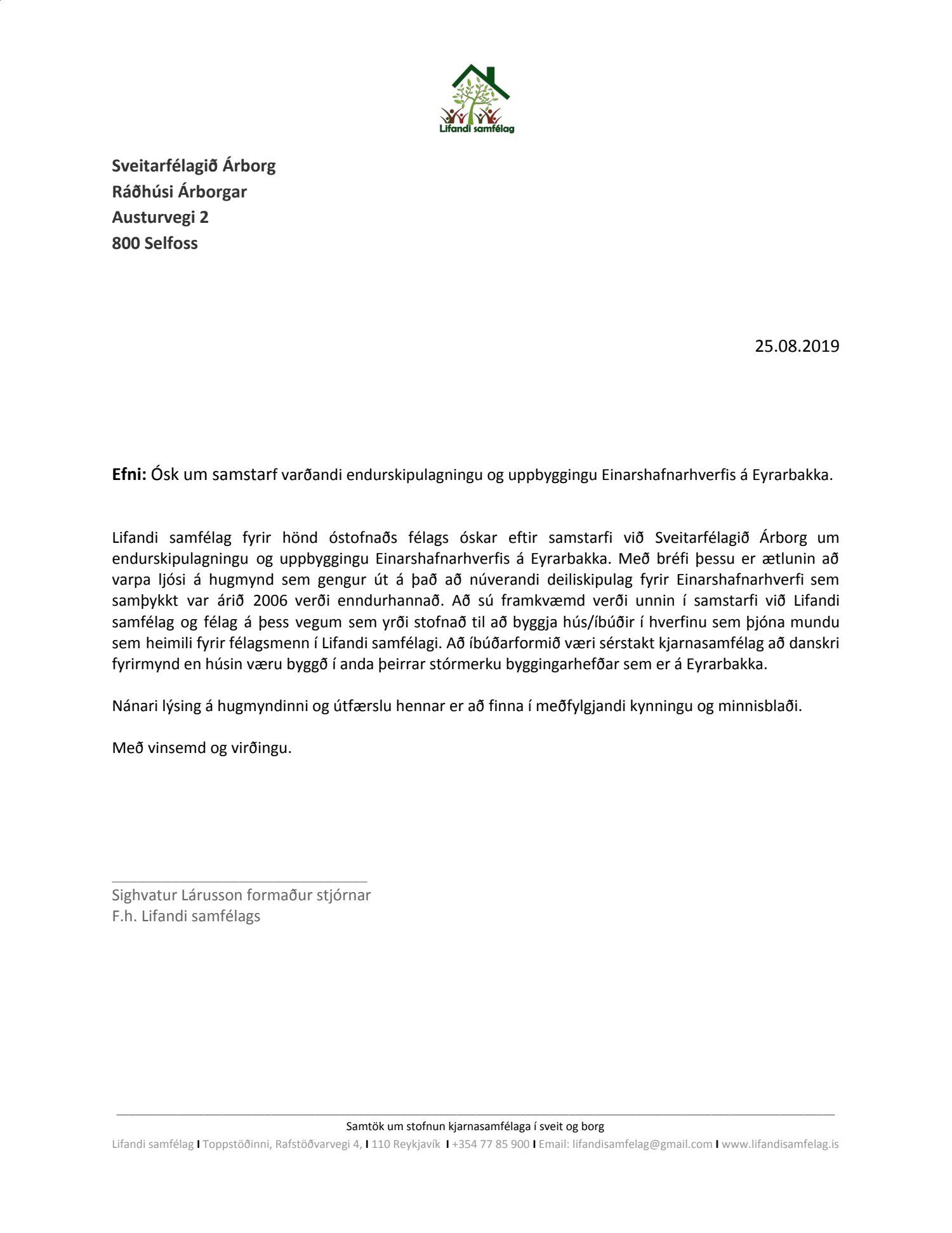 Erindi frá Lifandi samfélagi, dags. 25. ágúst, um hugsanlegt samstarf um uppbyggingu Einarshafnarhverfis á Eyrarbakka.