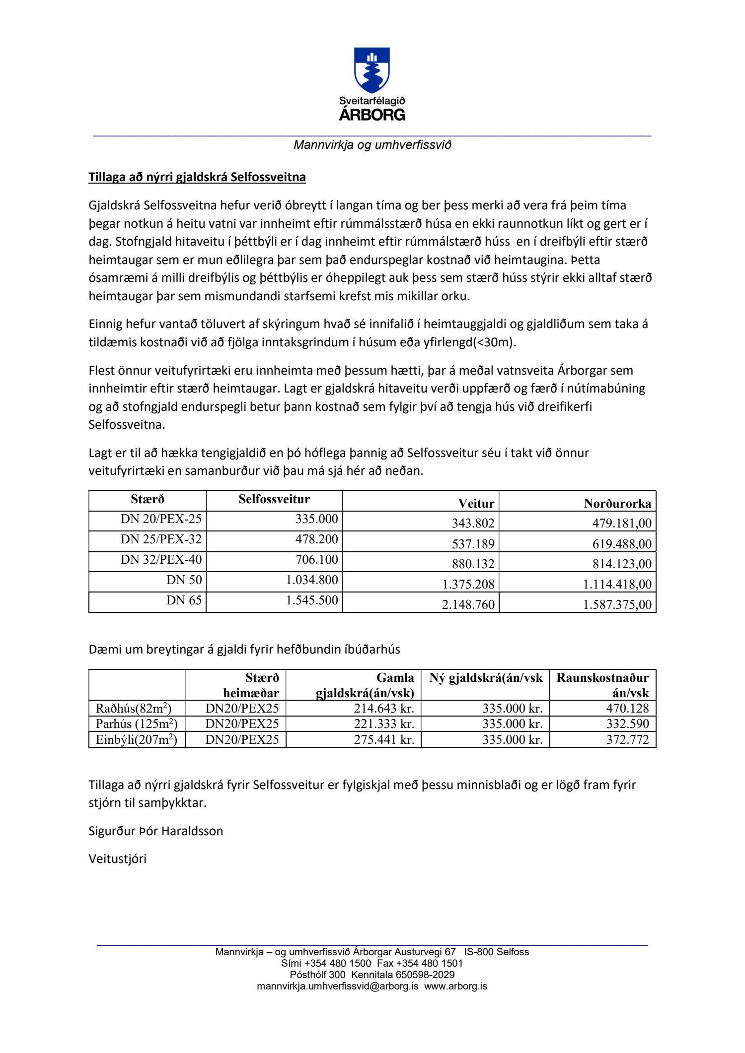 Tillaga frá 46. fundi eigna- og veitunefndar, frá 19. maí, liður 2. Tillaga að nýju heimæðargjaldi hitaveitu Nefndin samþykkir fyrirliggjandi drög að nýrri gjaldskrá Selfossveitna og lagði til við bæjarstjórn að samþykkja gjaldskrána.