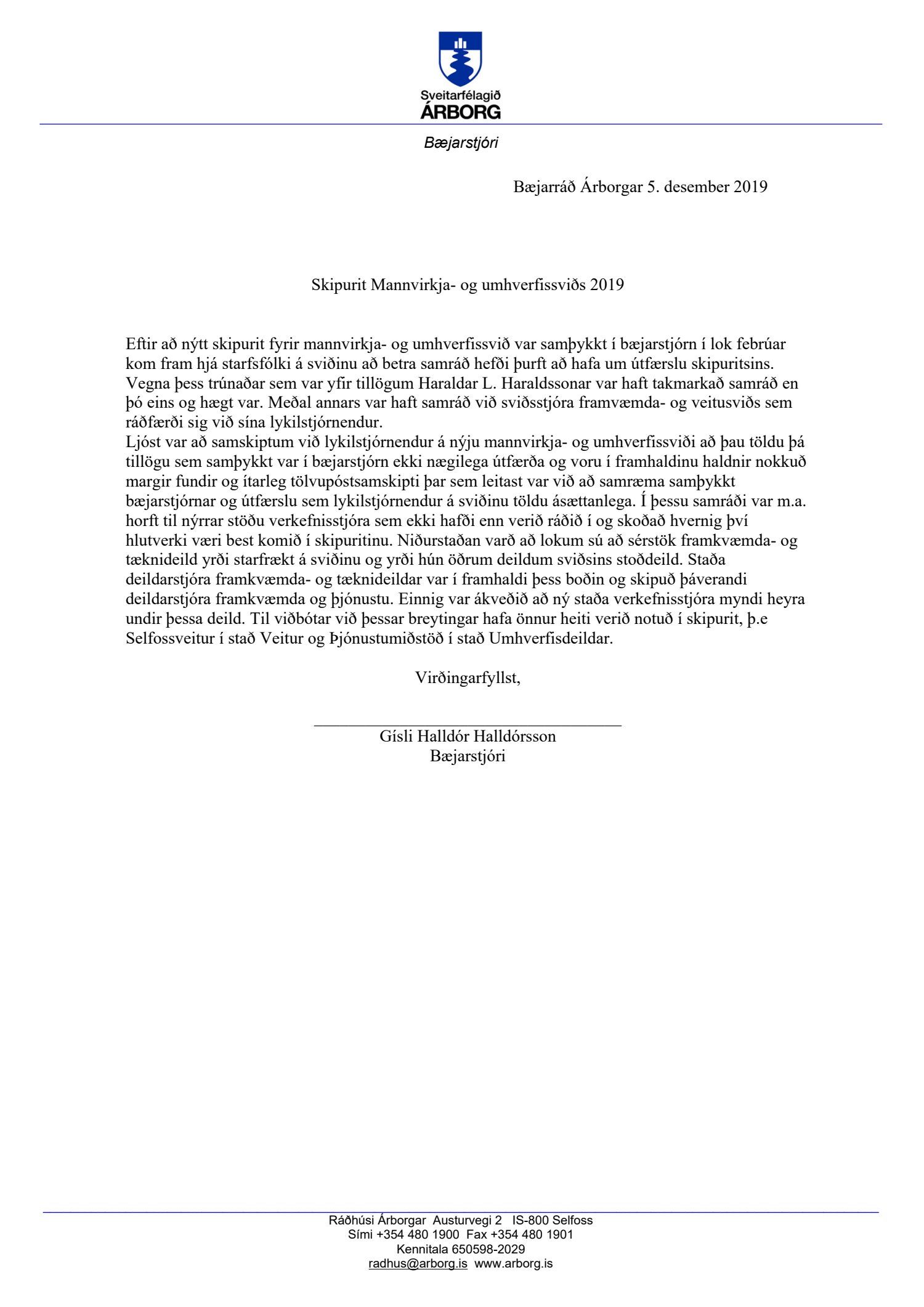 Fyrirspurn frá bæjarfulltrúa D-lista - skipurit fyrir mannvirkja- og umhverfissvið