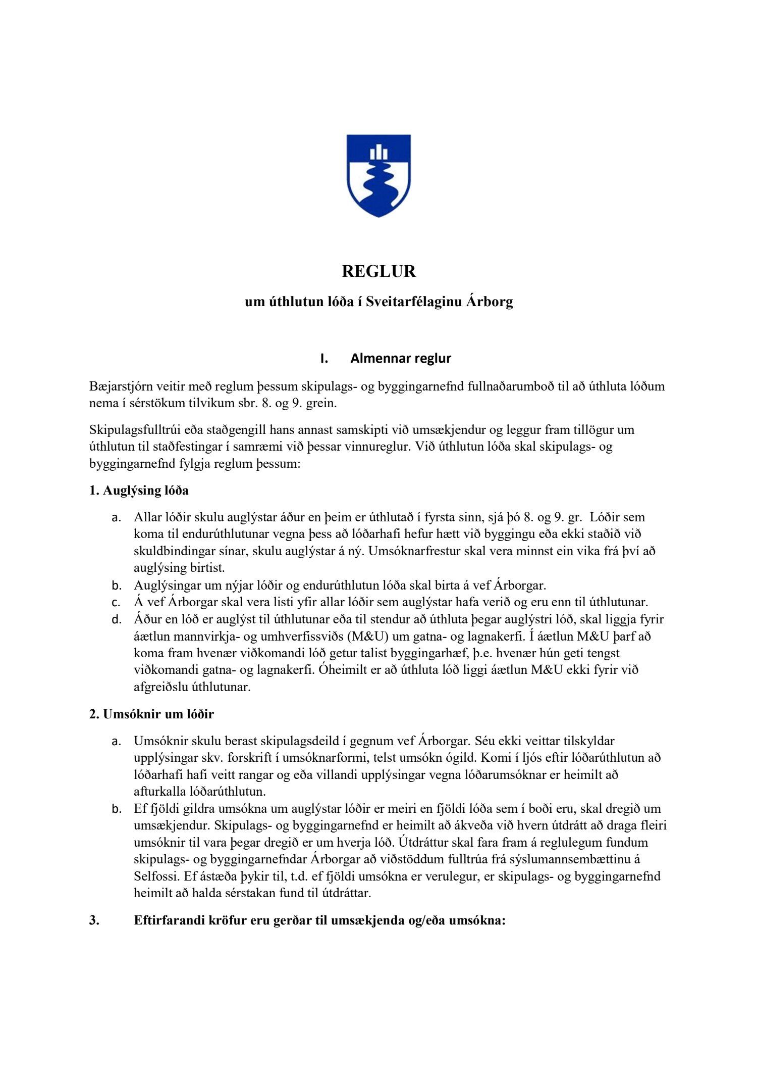 Í I. hluta (Almennar reglur) er kveðið á um það að allar umsóknir skulu berast í gegnum vefinn, Mín Árborg.