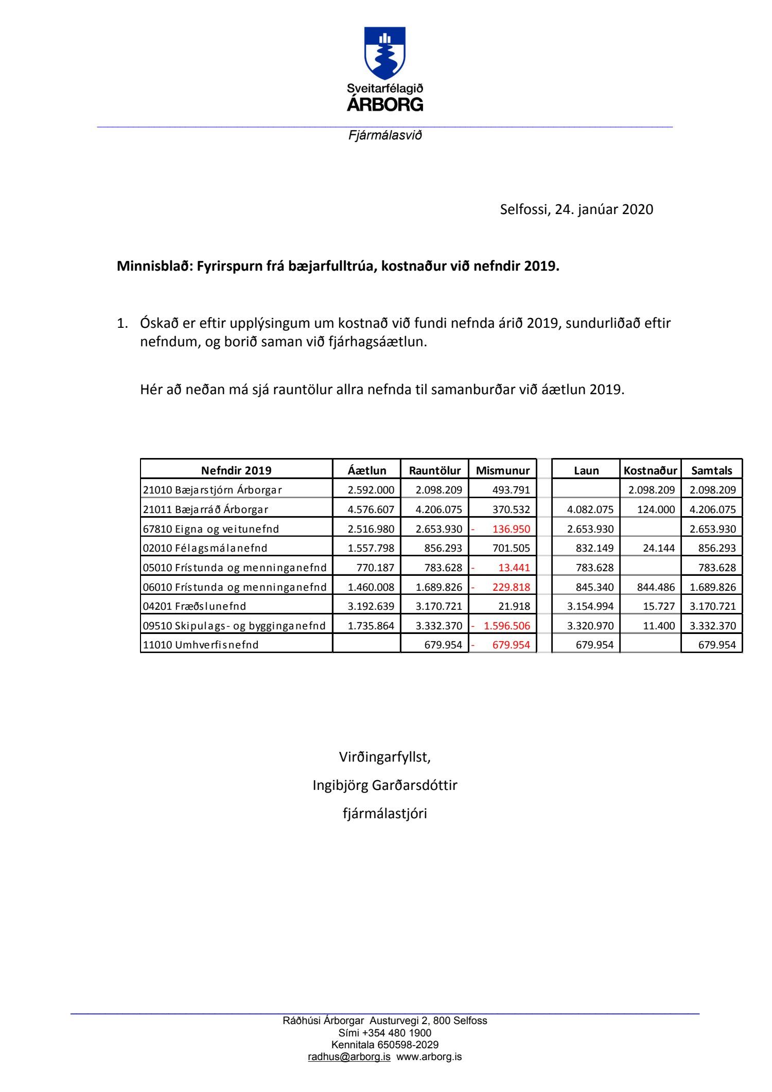 Svar fjármálastjóra lagt fram.