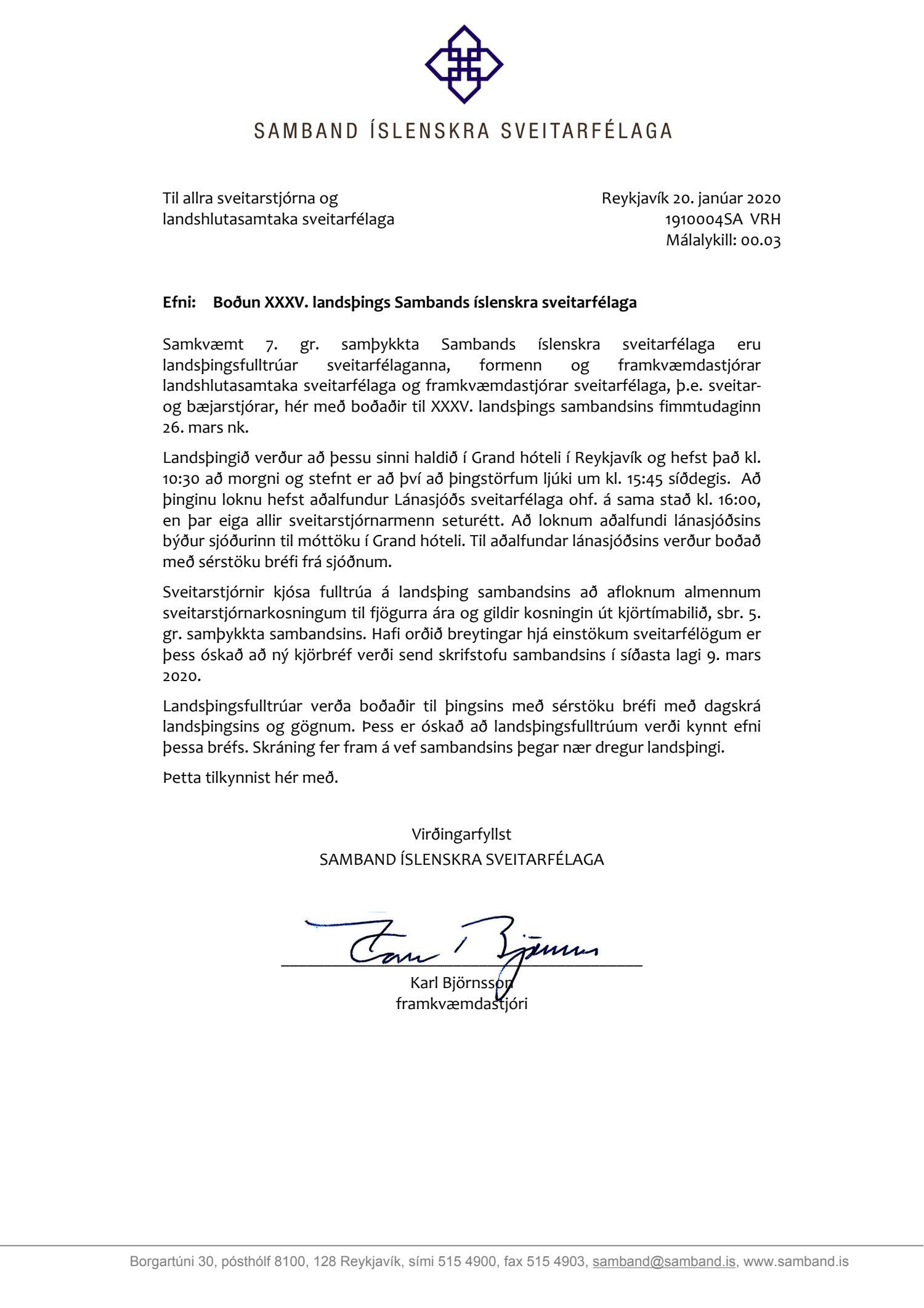 Boðun á XXXV. landsþing Sambands íslenskra sveitarfélaga 26. mars næstkomandi.