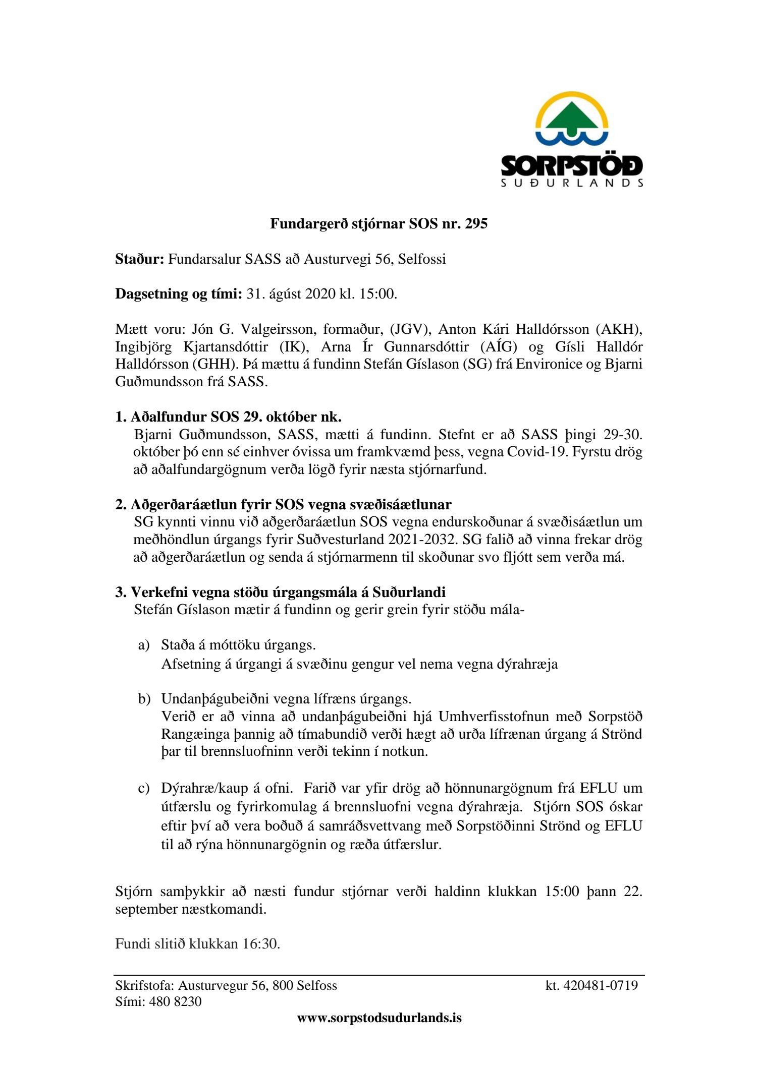 Fundargerðir stjórnar Sorpstöðvar Suðurlands 2020