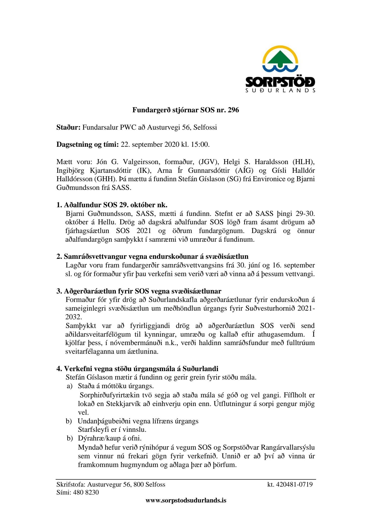 Fundargerðir stjórnar Sorpstöðvar Suðurlands 2020