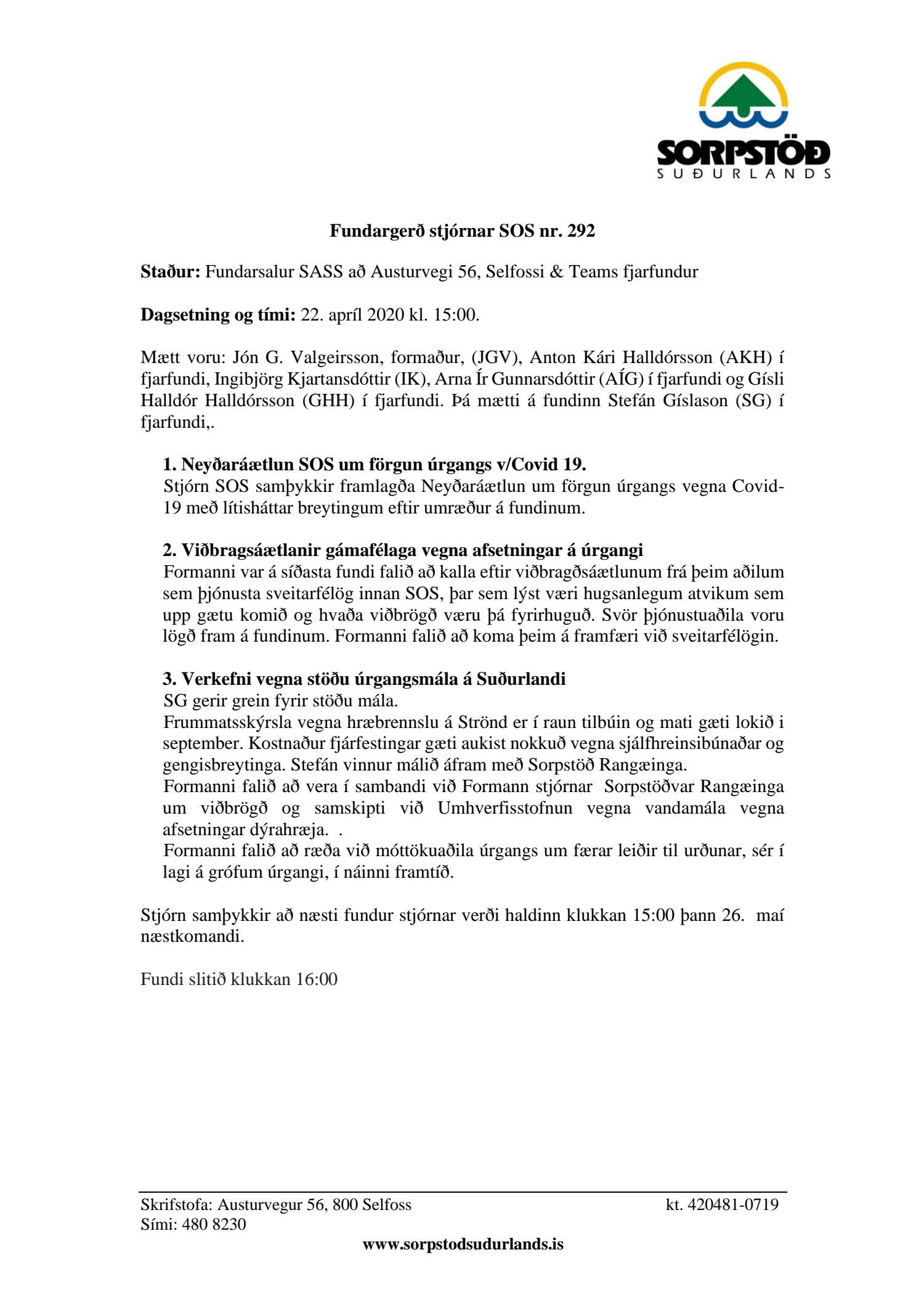 Fundargerðir stjórnar Sorpstöðvar Suðurlands 2020
