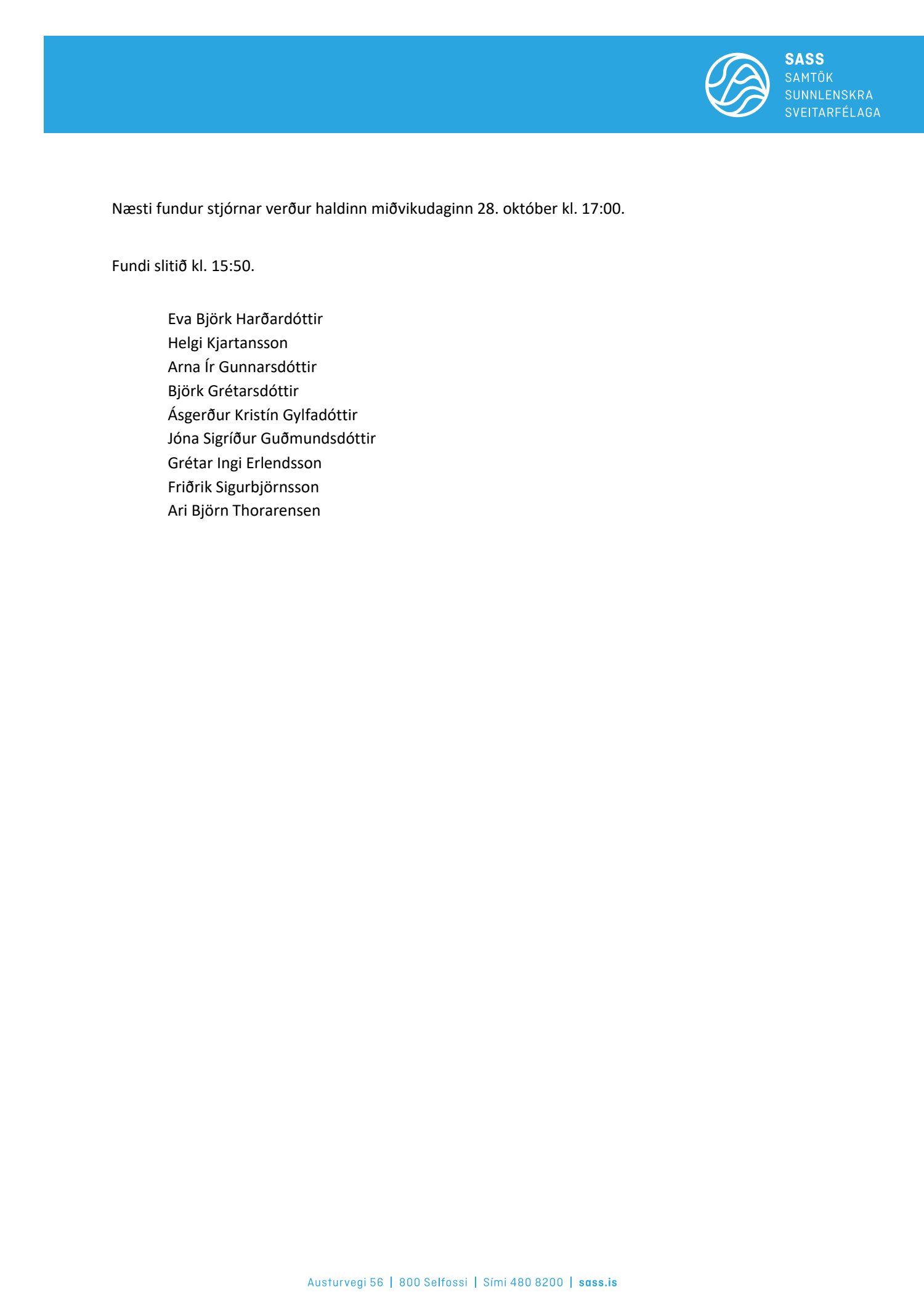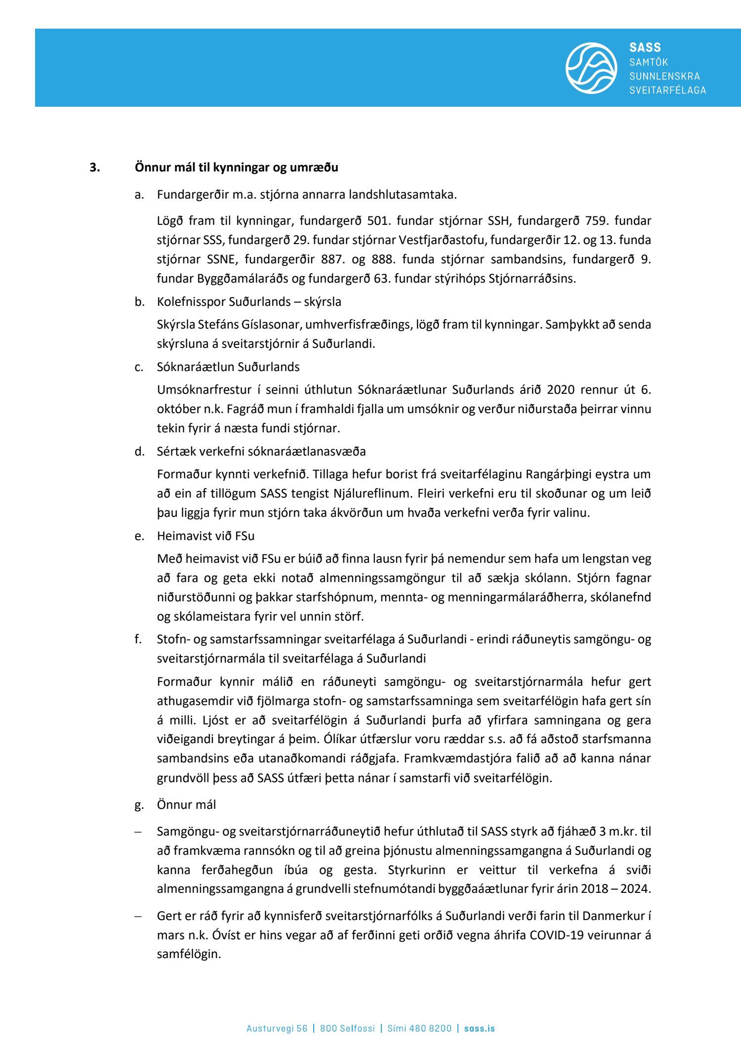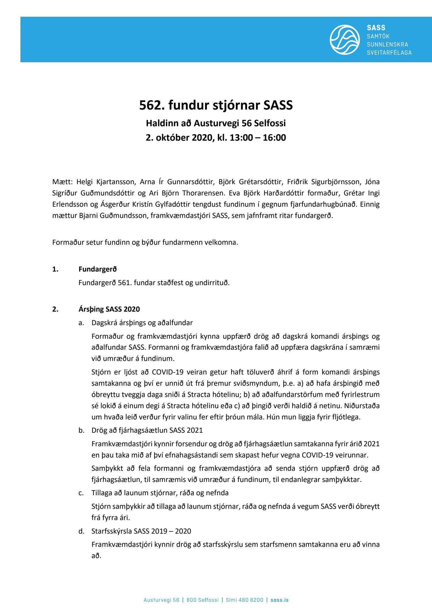 Fundargerðir stjórnar SASS 2020