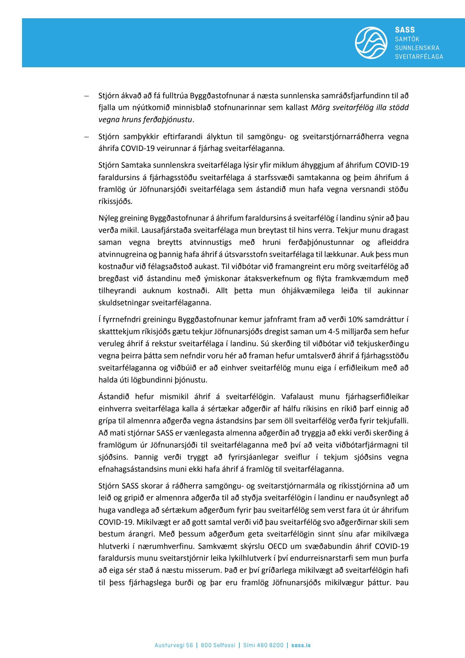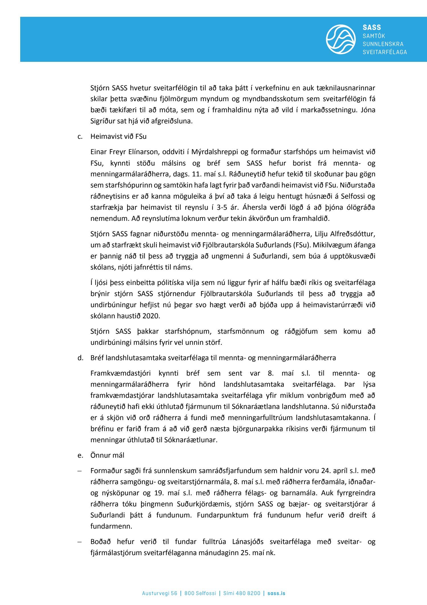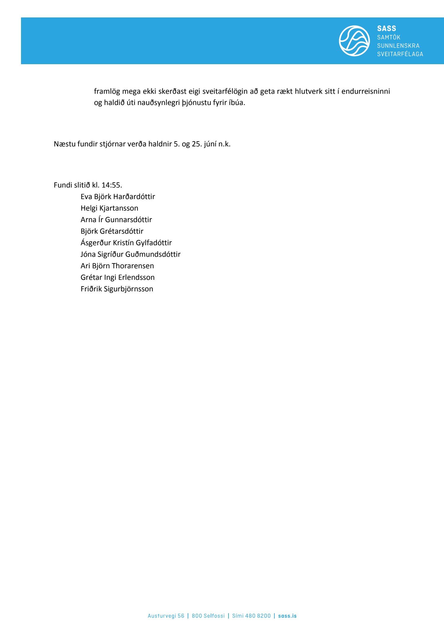 Fundargerðir stjórnar SASS 2020