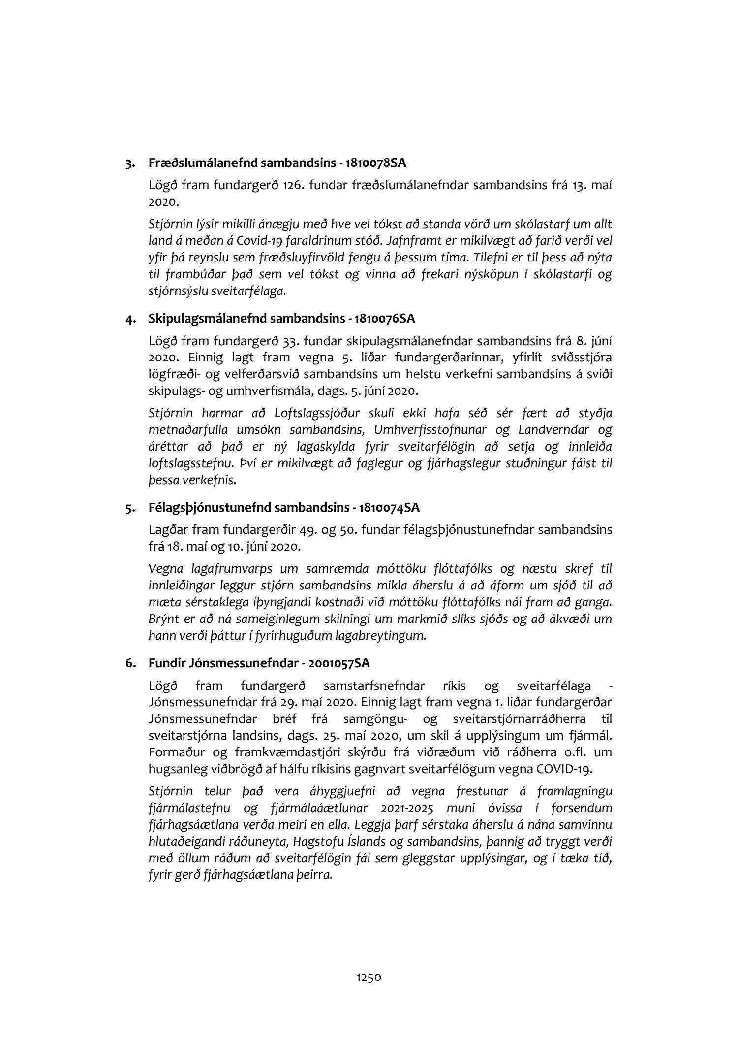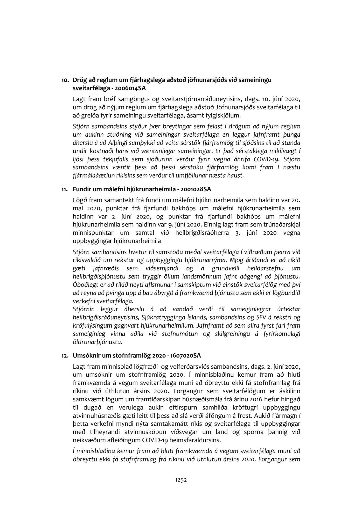 Fundargerðir stjórnar Sambands íslenskra sveitarfélaga 2020