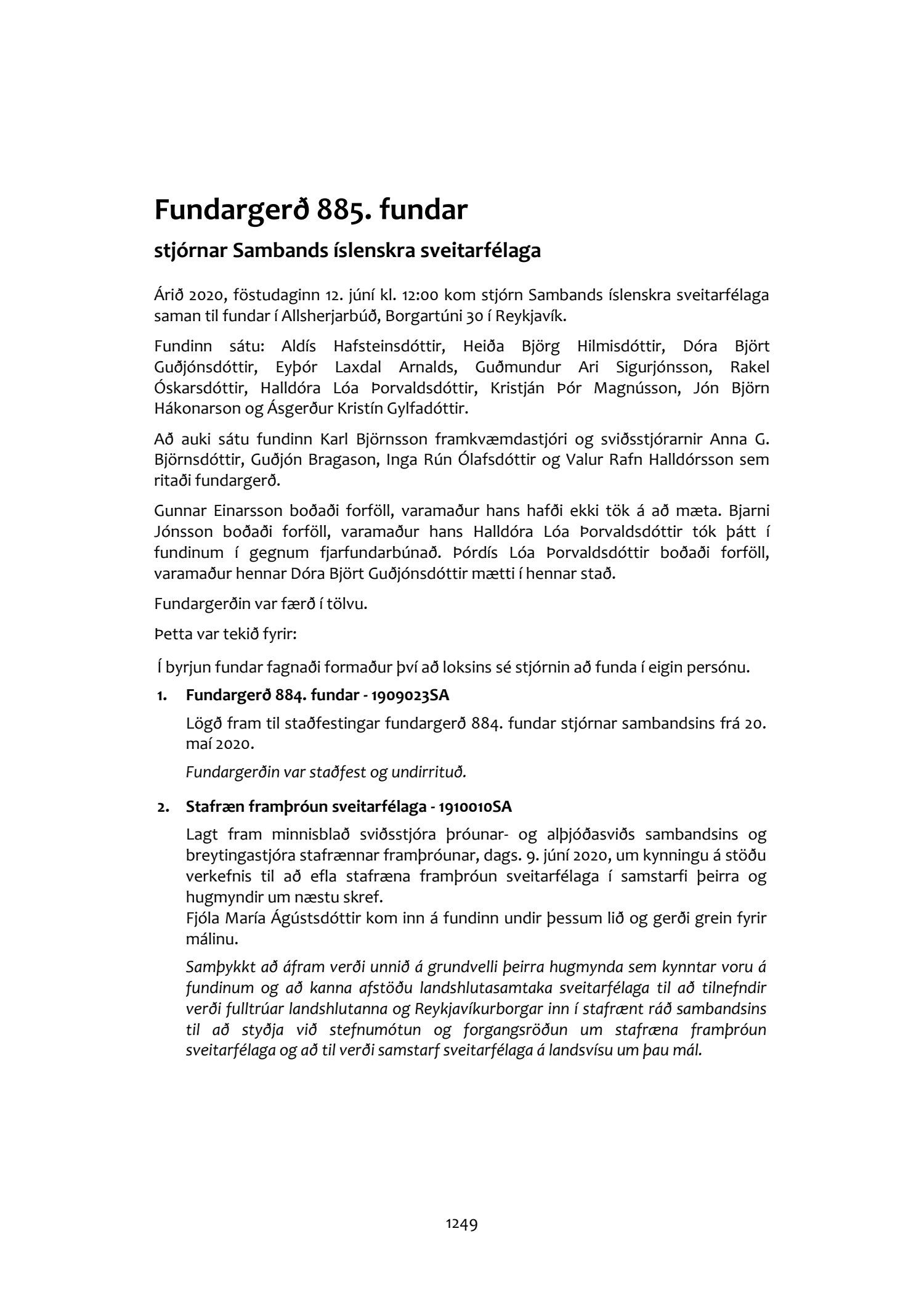 885. fundur haldinn 12. júní.