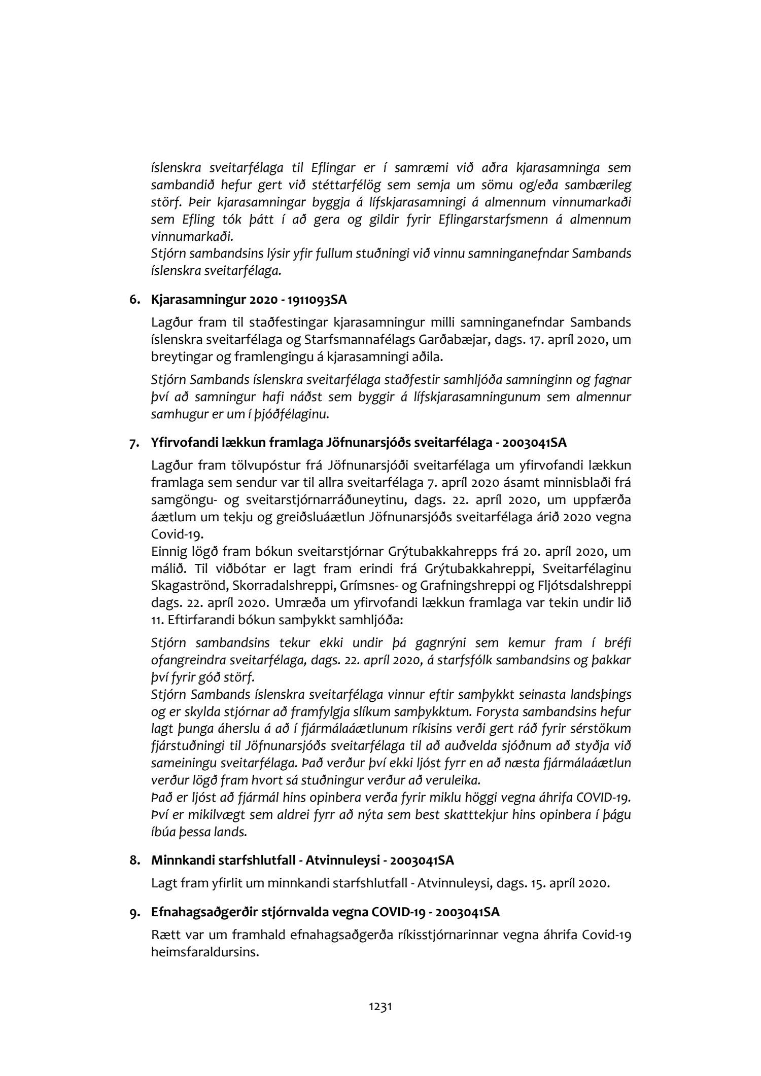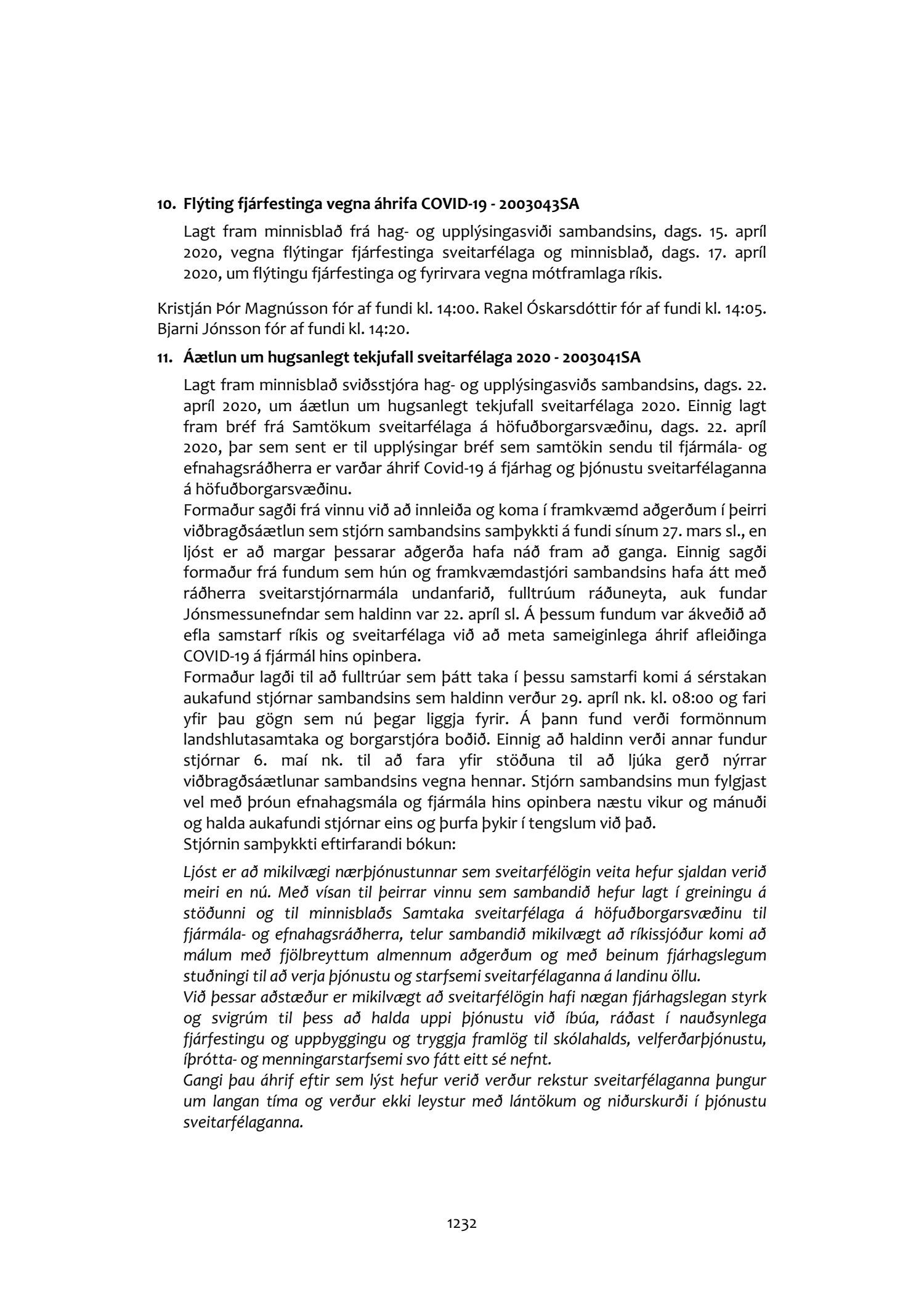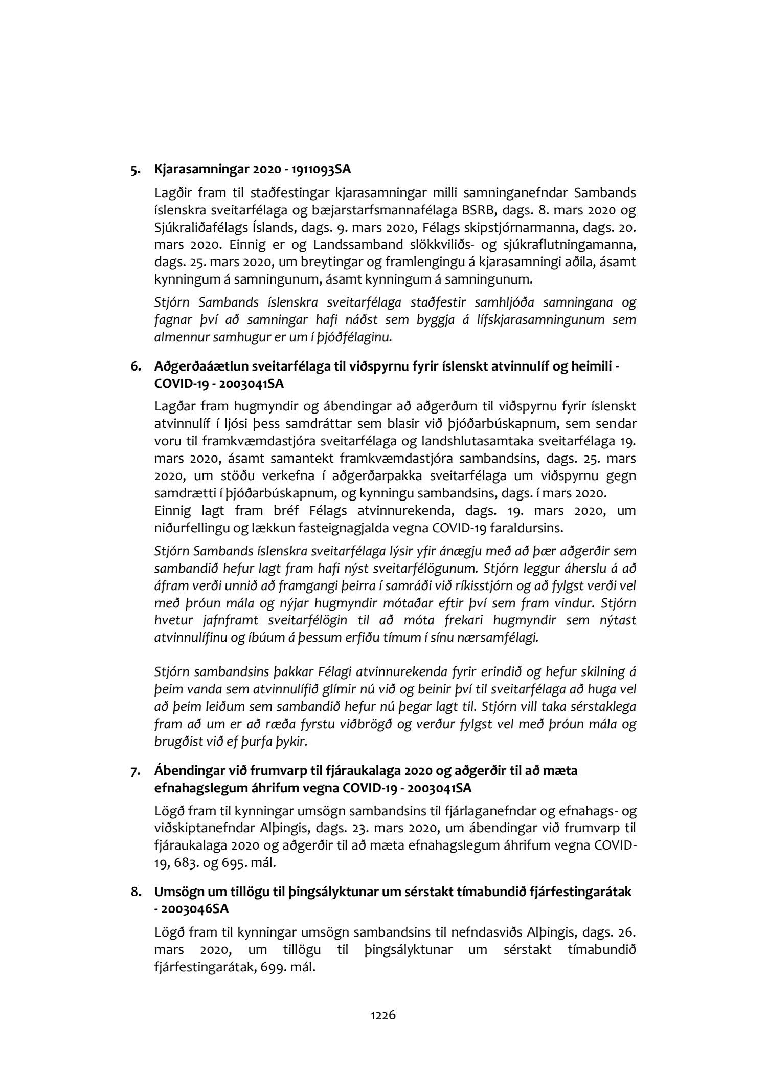Fundargerðir stjórnar Sambands íslenskra sveitarfélaga 2020