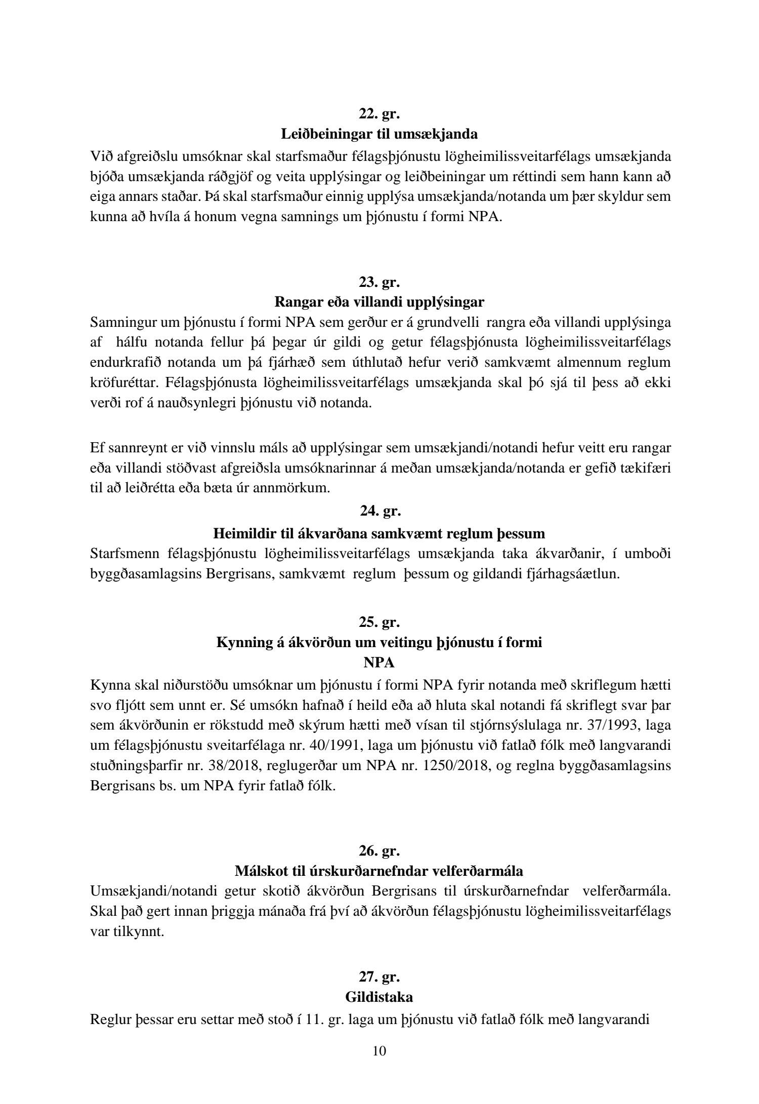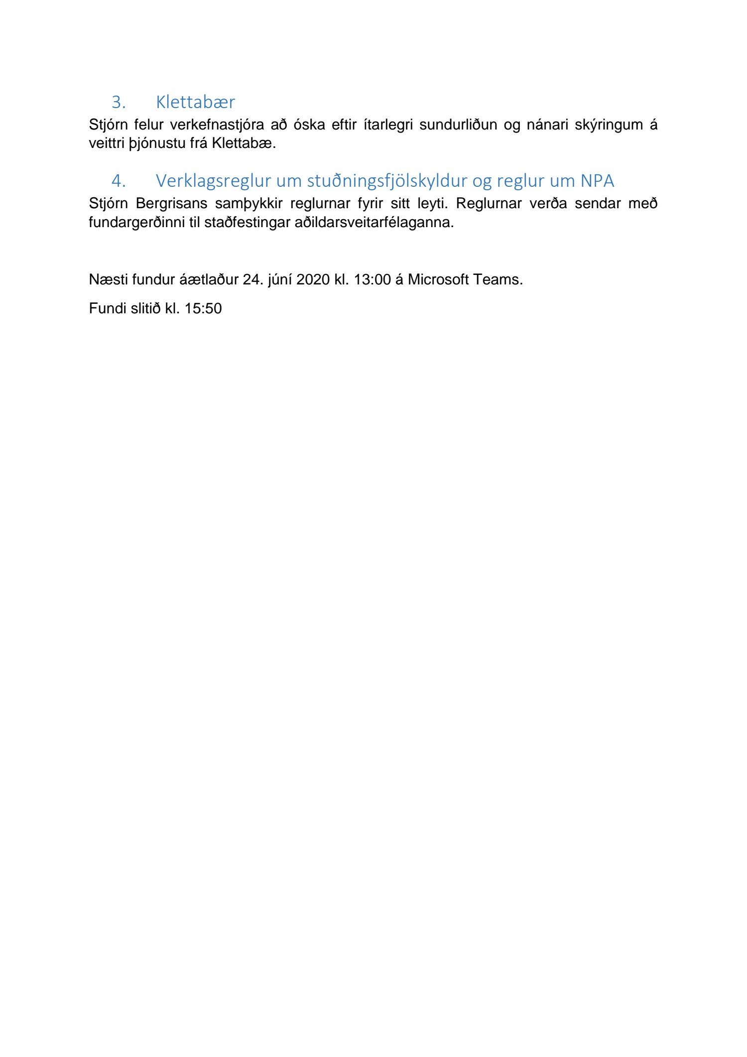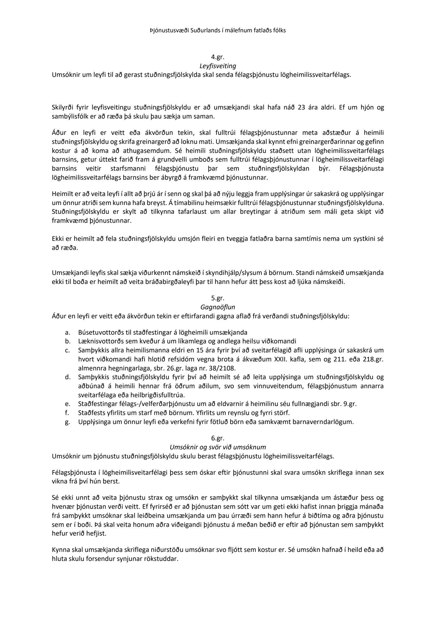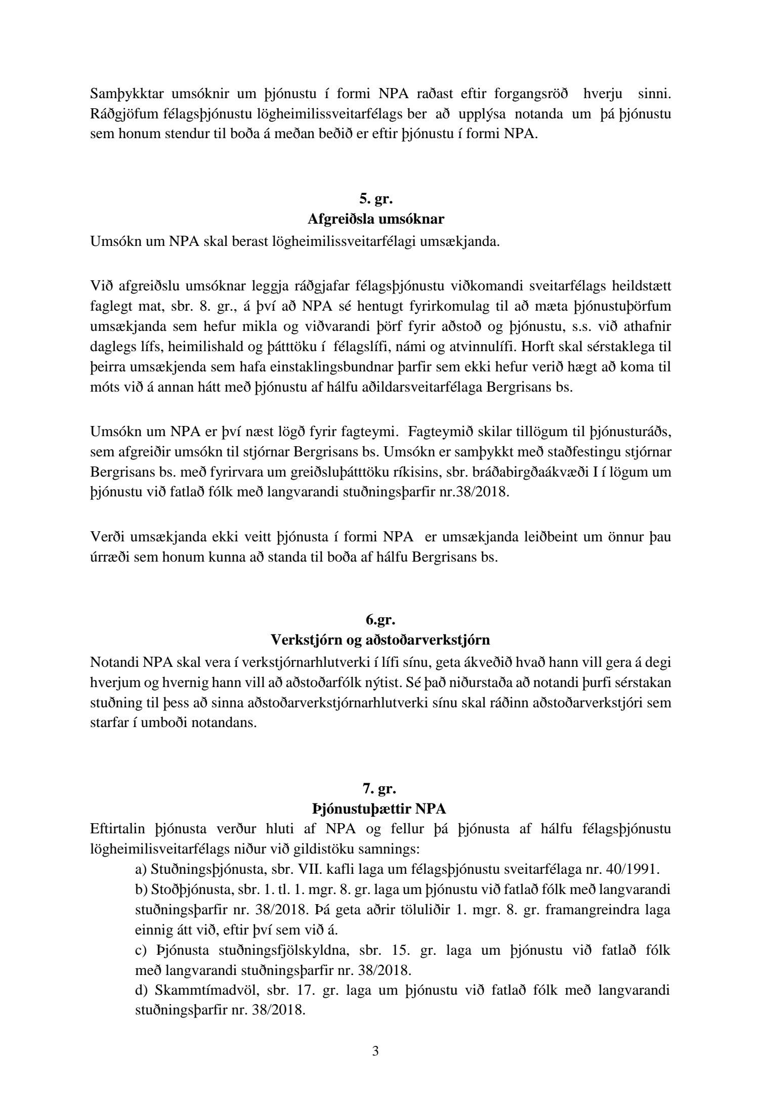 -liður 4. Verklagsreglur um stuðningsfjölskyldur og reglur um NPA. Stjórn Bergrisans samþykkir reglurnar fyrir sitt leyti. Óskað er eftir staðfestingu aðildarsveitarfélaganna á reglunum.