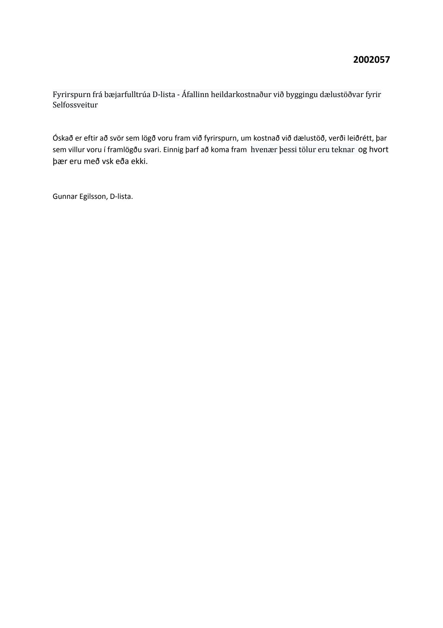 Bæjarráð samþykkir að svarið verði yfirfarið á mannvirkja- og umhverfissviði og lagt fyrir á næsta fundi bæjarráðs.