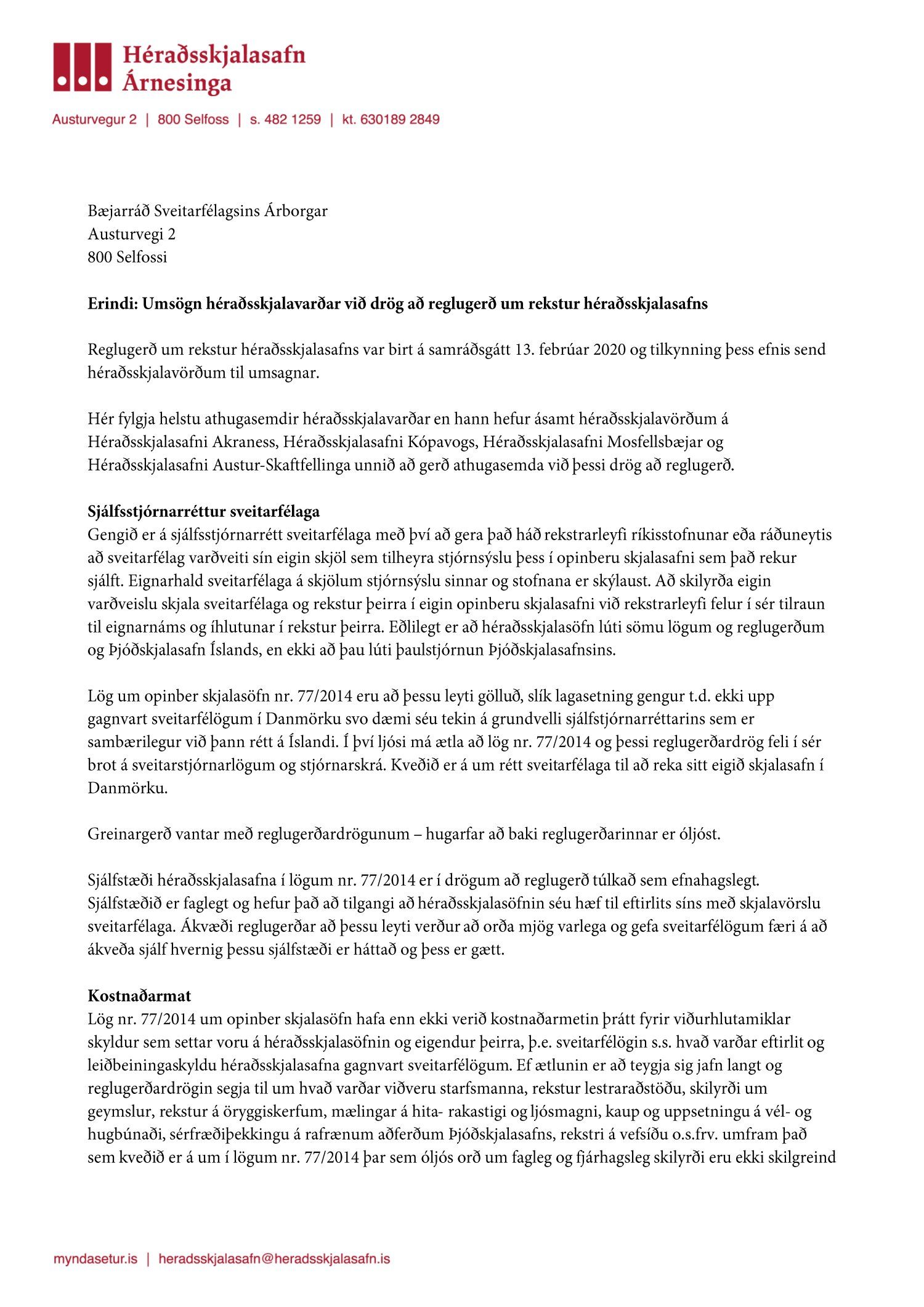Lögð fram umsögn héraðsskjalavarðar. Bæjarráð tekur undir umsögnina og felur bæjarstjóra að koma henni á framfæri.