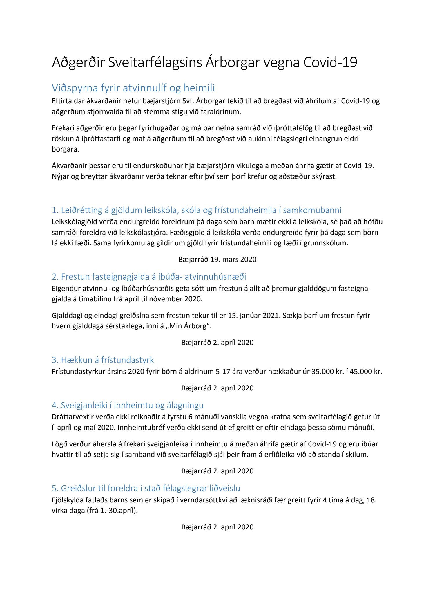 Á árinu 2020 veitti bæjarstjórn heimild til frestunar þriggja gjaldaga fasteignagjalda ársins. Samkvæmt þeirri ákvörðun, og í samræmi við tilmæli ríkisvaldsins, var gjöldunum frestað til 15. janúar 2021. Þessi gjöld eru nú að falla í gjalddaga og fara að því búnu til löginnheimtu, verði þau ekki greidd.