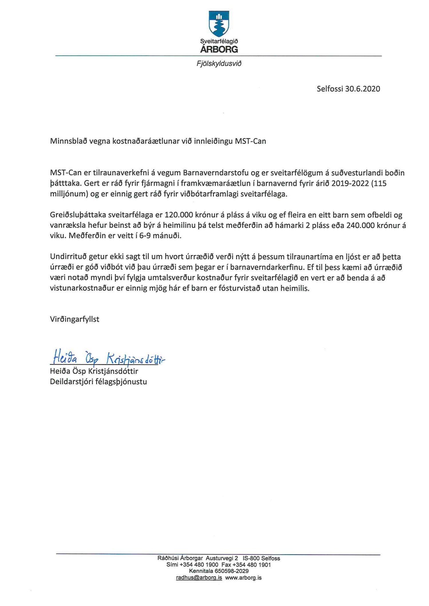 Bæjarráð lýsir ánægju með verkefnið og styður framgang þess. Engin afstaða er þó tekin til þess með hvaða hætti sveitarfélagið Árborg muni nýta sér úrræðið, enda verður það metið í hverju tilviki fyrir sig.