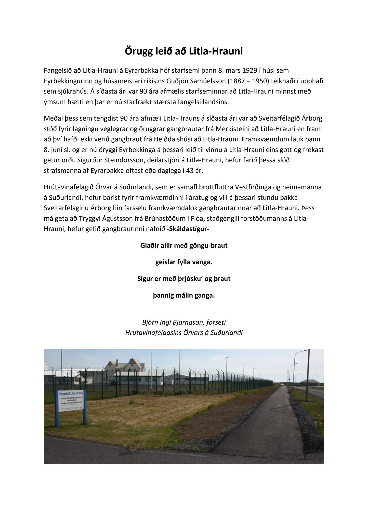Þakkir - gangbraut frá Litla-Hrauni að Merkisteini